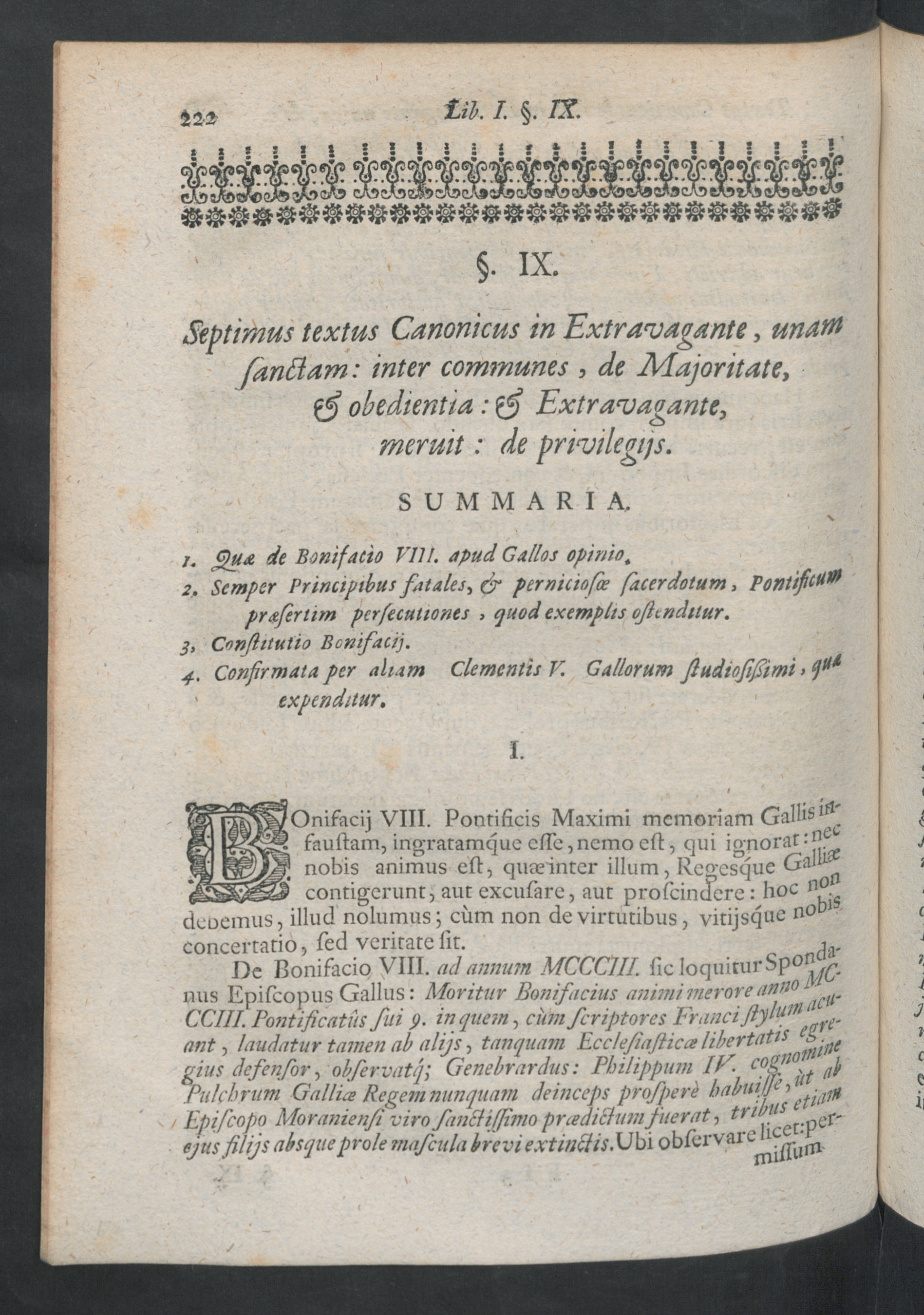 Onifacij VIII. Pontificis Maximi memoriam Gallisi fauftam, ingratamque cflc, nemo eft, qui ignorat: nf"\ nobis animus eft, qiueinter illum, Rc^cs^uecontigerunt, aut excufare, aut profcincFcre: hoc t>odeoemus, illud nolumus; cum non de virtutibus, vitijsque n0D 1