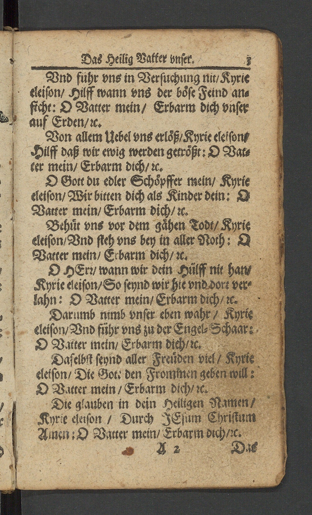 ^ Vnd führ vns in Versuchung nik/Kyrte^ eleison/ Hilff wann vns der böse Feind an«