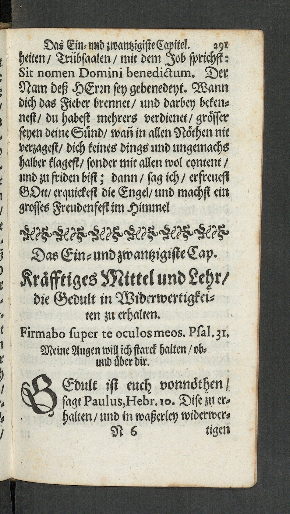 Nam deß HErrnseygebenedeyt. Wanndich das Fieber brennet/ rrnd darbey beken-nest/du habest mehrerö verdienet/grösserseyen deine Sund/ wan in allen Nöthen nieverzagest/ dich keines dings lrnd ungemachshalber klagest/ sonder mit allen wol conrenk /rind zu ftiden bist; dann / sag ich / erfre>refiGOtt/ erquickest die Enge!/ rrnd machst eingrosses Freudenfest im Himmel