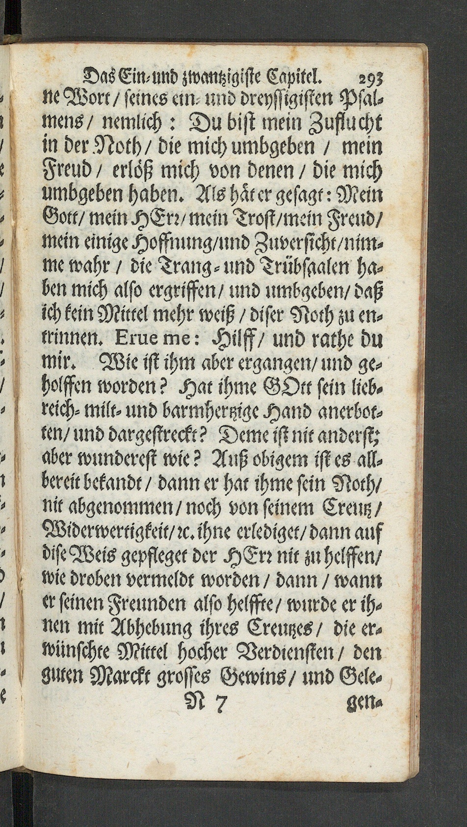 Das Ein-und zwantzigiste Capitel. -9;. ne Work / seines ein- und dreyssigistcn Psal-l mens/ nemlich : Du bist mein Zuflucht1 in der Noth/ die mich umbgeben / meine Freud / erlöß mich von denen / die mich