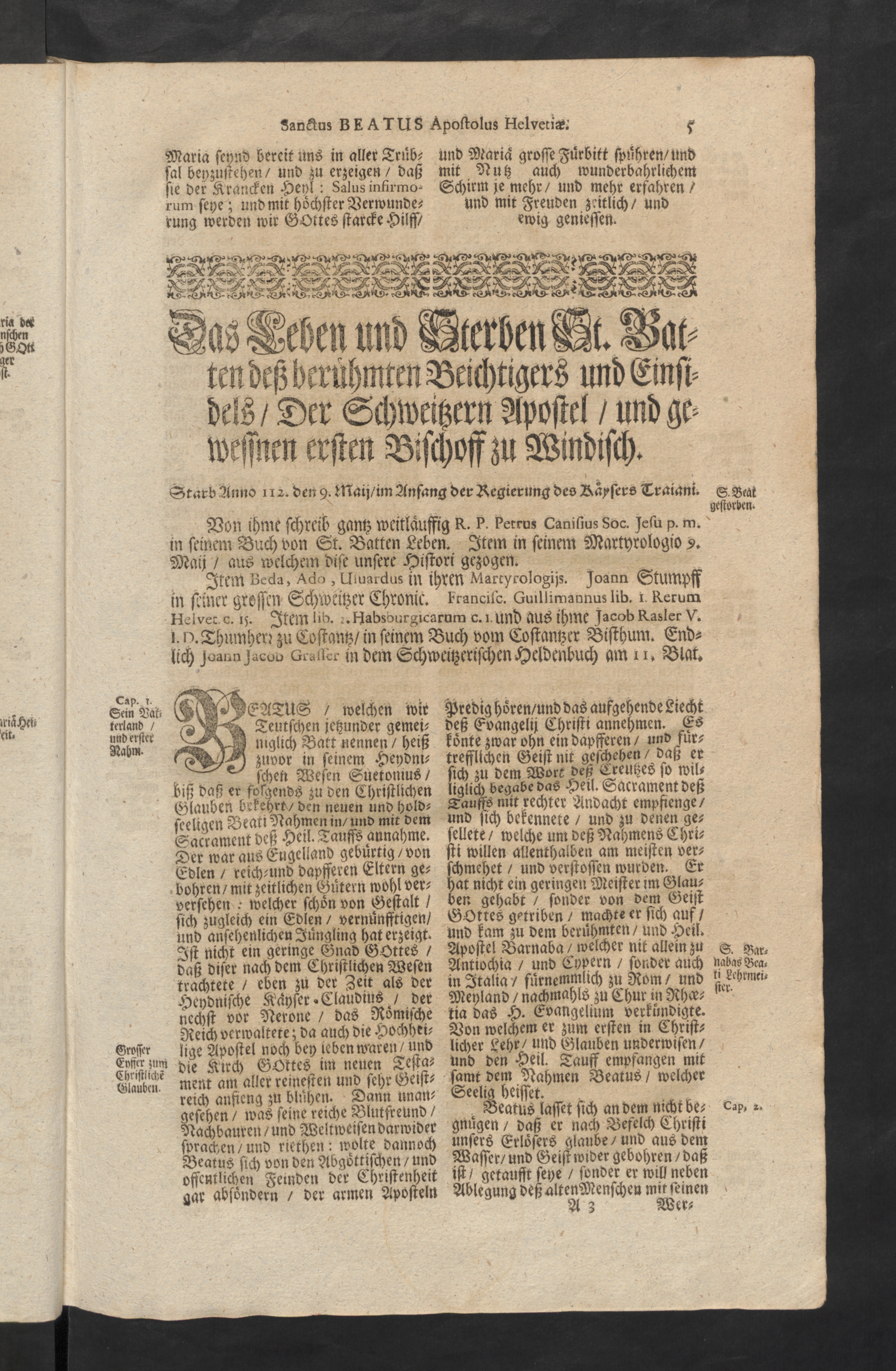 Helvetia Sancta, H. Schweitzer-Land : das ist, ein Heiliger lustiger Blumen-Garten, und Paradeiss der Heiligen, oder Beschreibung aller Heiligen, so von Anfang der Christenheit in Heiligkeit des Lebens, und mancherley Wunderwercken, nicht allein in Schweitzerland, sondern auch an angräntzenden Orthen geleuchtet samt einen Zusatz der Heilig-Sprechung des Heil. Bruder Clausen/und Heiligen Martyrer Fidel, wie auch mit einem ausführlichen Register aller Heiligen / zusammen gezogen, und beschriben durch weyland den Ehrwürdigen, und wohlgelehrten Herren, P.F. Henricum Murer, der Carthauss Ittingen Profess, und Procurator, etc.