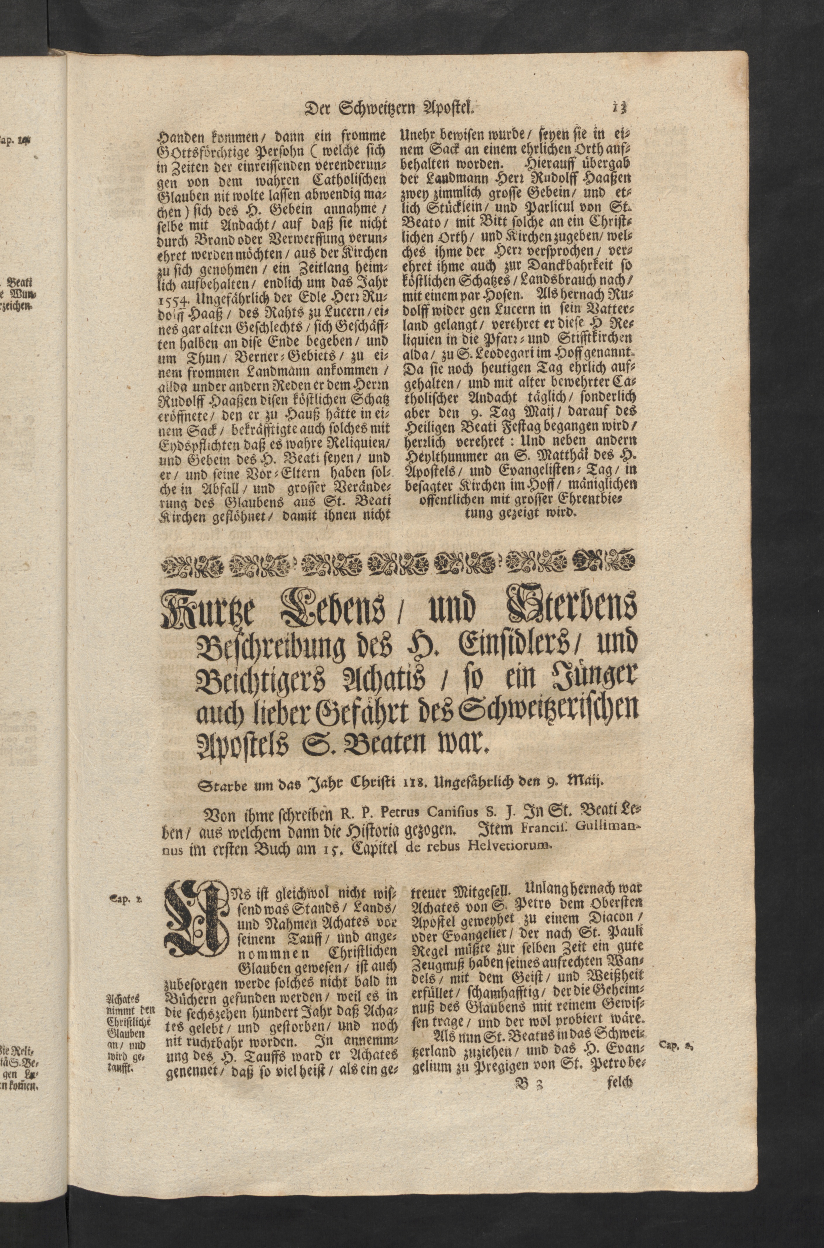 Helvetia Sancta, H. Schweitzer-Land : das ist, ein Heiliger lustiger Blumen-Garten, und Paradeiss der Heiligen, oder Beschreibung aller Heiligen, so von Anfang der Christenheit in Heiligkeit des Lebens, und mancherley Wunderwercken, nicht allein in Schweitzerland, sondern auch an angräntzenden Orthen geleuchtet samt einen Zusatz der Heilig-Sprechung des Heil. Bruder Clausen/und Heiligen Martyrer Fidel, wie auch mit einem ausführlichen Register aller Heiligen / zusammen gezogen, und beschriben durch weyland den Ehrwürdigen, und wohlgelehrten Herren, P.F. Henricum Murer, der Carthauss Ittingen Profess, und Procurator, etc.