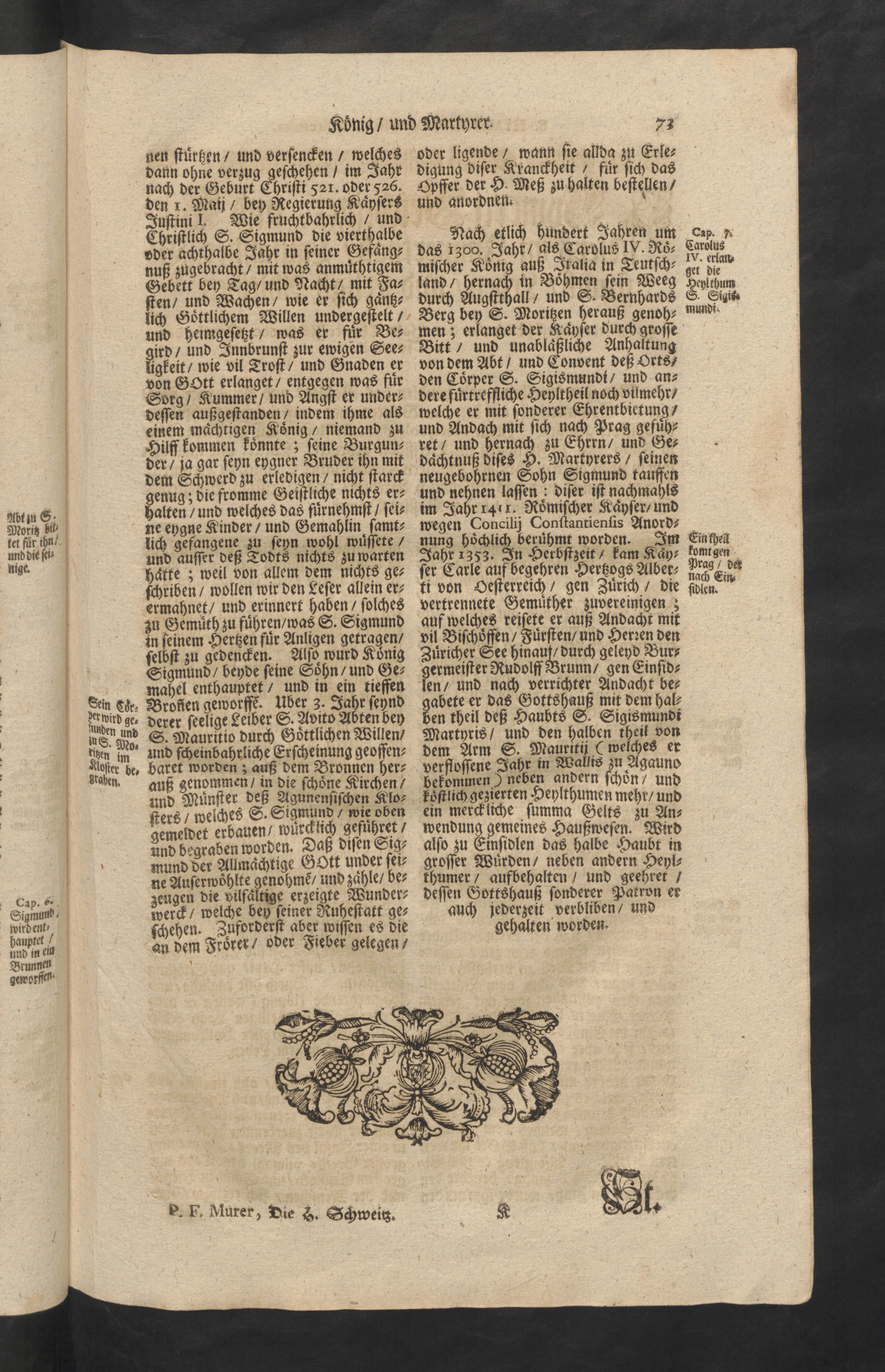Helvetia Sancta, H. Schweitzer-Land : das ist, ein Heiliger lustiger Blumen-Garten, und Paradeiss der Heiligen, oder Beschreibung aller Heiligen, so von Anfang der Christenheit in Heiligkeit des Lebens, und mancherley Wunderwercken, nicht allein in Schweitzerland, sondern auch an angräntzenden Orthen geleuchtet samt einen Zusatz der Heilig-Sprechung des Heil. Bruder Clausen/und Heiligen Martyrer Fidel, wie auch mit einem ausführlichen Register aller Heiligen / zusammen gezogen, und beschriben durch weyland den Ehrwürdigen, und wohlgelehrten Herren, P.F. Henricum Murer, der Carthauss Ittingen Profess, und Procurator, etc.