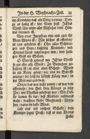 Catholisch Gesang-Büchlein : darinnen allerhand schöne geistliche Gesänger zu finden, welche durch das gantze Jahr an Sonn- und Feyrägen, in den Kinderlehren, Processionen, Creutzgängen, und anderen Orthen sehr nutzlich zugebrauchen