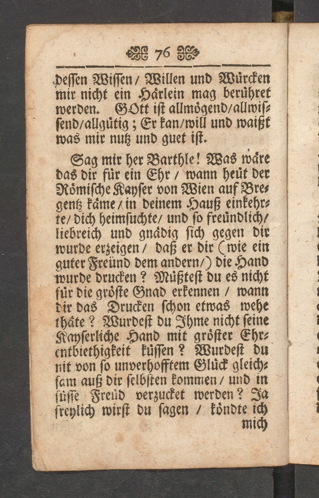 Der Unwillige Barthle : das ist: Sittliches Gespräch, zwischen einem eifferigen Seelsorger, und einem einfältigen Bauren; in welchem jener disen unterrichtet, wie man unter der Zucht-Ruthen zeitlicher Trangsal die Vätterliche Hand Gottes erkennen, küssen, und anbeten solle zu süssem Trost aller betrangten und bekümmerten Gemüther vormahlen beschrieben, und zusammen getragen / von R.P. Josepho Langenauer Ord. S.P. Benedicti, dess Löbl. uralen Gottshauss Mehrerau bey Bregentz Subpriore &c.