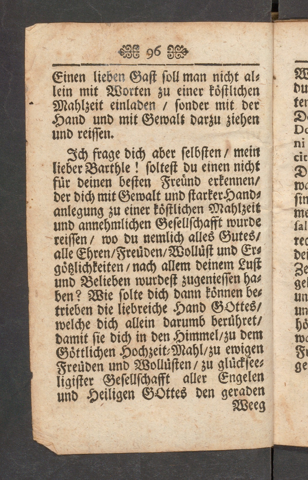 Der Unwillige Barthle : das ist: Sittliches Gespräch, zwischen einem eifferigen Seelsorger, und einem einfältigen Bauren; in welchem jener disen unterrichtet, wie man unter der Zucht-Ruthen zeitlicher Trangsal die Vätterliche Hand Gottes erkennen, küssen, und anbeten solle zu süssem Trost aller betrangten und bekümmerten Gemüther vormahlen beschrieben, und zusammen getragen / von R.P. Josepho Langenauer Ord. S.P. Benedicti, dess Löbl. uralen Gottshauss Mehrerau bey Bregentz Subpriore &c.