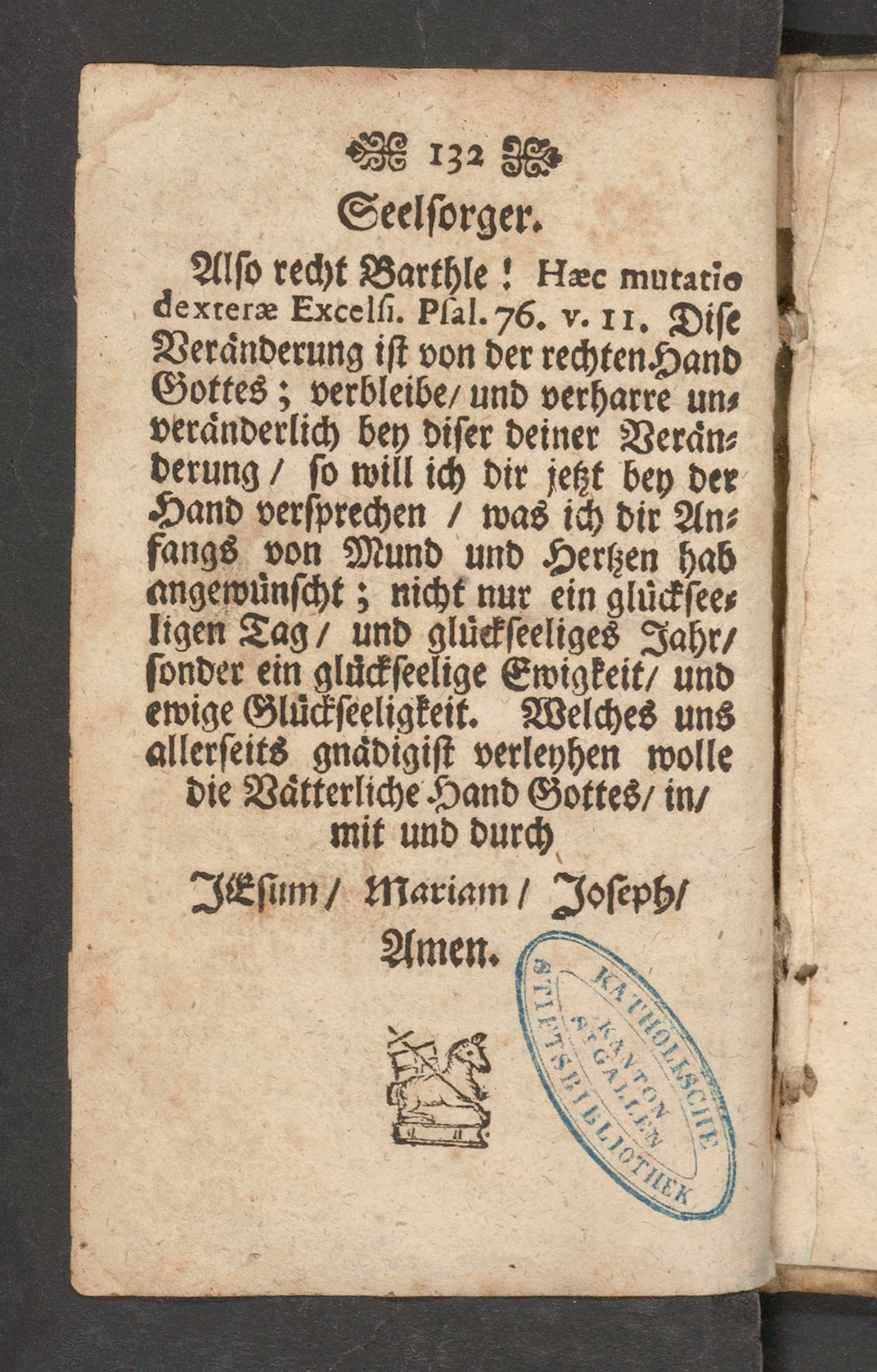 Der Unwillige Barthle : das ist: Sittliches Gespräch, zwischen einem eifferigen Seelsorger, und einem einfältigen Bauren; in welchem jener disen unterrichtet, wie man unter der Zucht-Ruthen zeitlicher Trangsal die Vätterliche Hand Gottes erkennen, küssen, und anbeten solle zu süssem Trost aller betrangten und bekümmerten Gemüther vormahlen beschrieben, und zusammen getragen / von R.P. Josepho Langenauer Ord. S.P. Benedicti, dess Löbl. uralen Gottshauss Mehrerau bey Bregentz Subpriore &c.