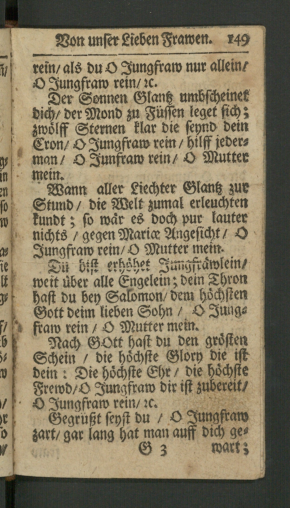 [Catholisches Gesang-Büchlein] : [darinnen allerhand schöne geistliche Gesänger zu finden, welche durch das gantze Jahr an Sonn- und Feyrägen, in den Kinderlehren, Processionen, Creutzgängen, und anderen Orthen sehr nutzlich zugebrauchen]