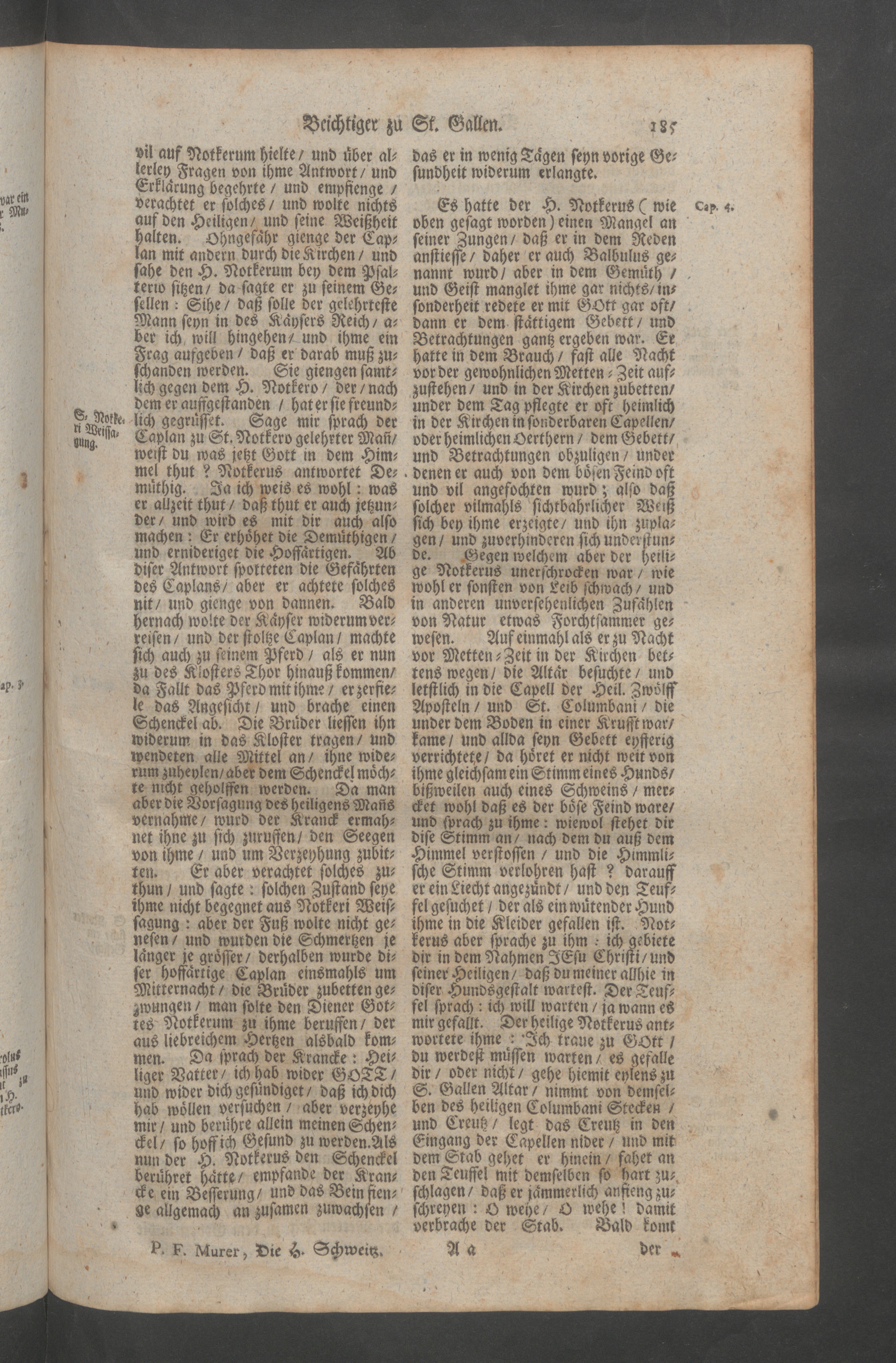 Helvetia Sancta, H. Schweitzer-Land : das ist ein Heiliger lustiger Blumen-Garten, und Paradeiss der Heiligen; oder Beschreibung aller Heiligen, so von Anfang der Christenheit in Heiligkeit des Lebens, und mancherley Wunderwercken, nicht allein in Schweitzerland, sondern auch an angräntzenden Orthen geleuchtet samt einem Zusatz von dem Heiligen Maryrer Fideli, und der Feyrlichen Enthebung des Seeligen Bruder Clausen, wie auch mit einem ausführlichen Register aller Heiligen, und Seeligen / <<seu>> Paradisus Sanctorum Helvetiae florum zusammen gezogen, und beschriben durch weyland den ehrwürdigen, und wohlgelehrten Herren, P.F. Henricum Murer, der Carthauss Ittingen Profess, und Procurator, etc.