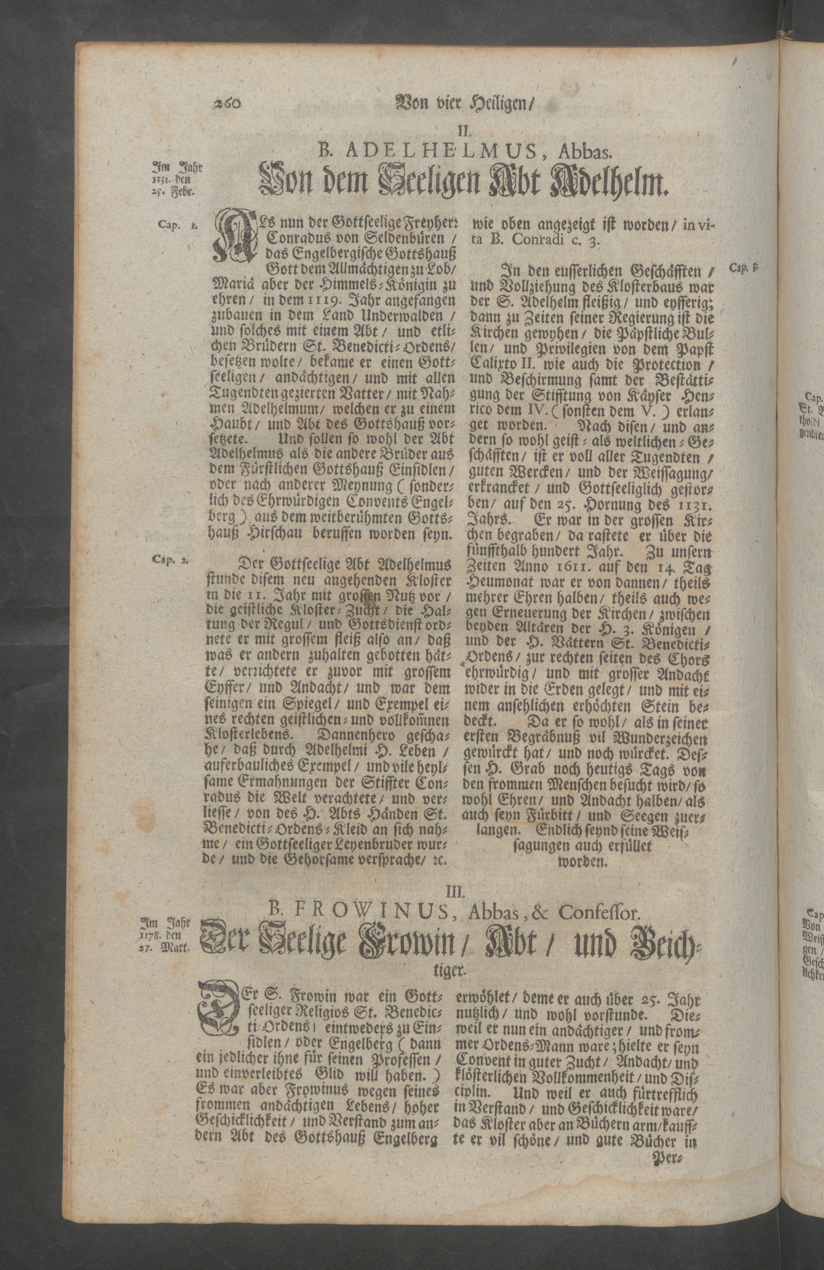 Helvetia Sancta, H. Schweitzer-Land : das ist ein Heiliger lustiger Blumen-Garten, und Paradeiss der Heiligen; oder Beschreibung aller Heiligen, so von Anfang der Christenheit in Heiligkeit des Lebens, und mancherley Wunderwercken, nicht allein in Schweitzerland, sondern auch an angräntzenden Orthen geleuchtet samt einem Zusatz von dem Heiligen Maryrer Fideli, und der Feyrlichen Enthebung des Seeligen Bruder Clausen, wie auch mit einem ausführlichen Register aller Heiligen, und Seeligen / <<seu>> Paradisus Sanctorum Helvetiae florum zusammen gezogen, und beschriben durch weyland den ehrwürdigen, und wohlgelehrten Herren, P.F. Henricum Murer, der Carthauss Ittingen Profess, und Procurator, etc.