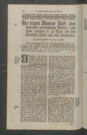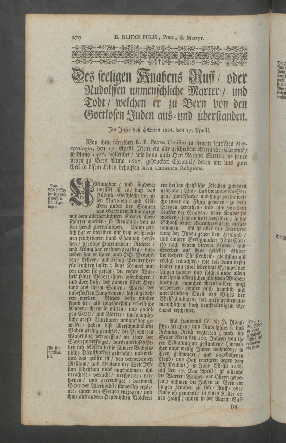 Helvetia Sancta, H. Schweitzer-Land : das ist ein Heiliger lustiger Blumen-Garten, und Paradeiss der Heiligen; oder Beschreibung aller Heiligen, so von Anfang der Christenheit in Heiligkeit des Lebens, und mancherley Wunderwercken, nicht allein in Schweitzerland, sondern auch an angräntzenden Orthen geleuchtet samt einem Zusatz von dem Heiligen Maryrer Fideli, und der Feyrlichen Enthebung des Seeligen Bruder Clausen, wie auch mit einem ausführlichen Register aller Heiligen, und Seeligen / <<seu>> Paradisus Sanctorum Helvetiae florum zusammen gezogen, und beschriben durch weyland den ehrwürdigen, und wohlgelehrten Herren, P.F. Henricum Murer, der Carthauss Ittingen Profess, und Procurator, etc.