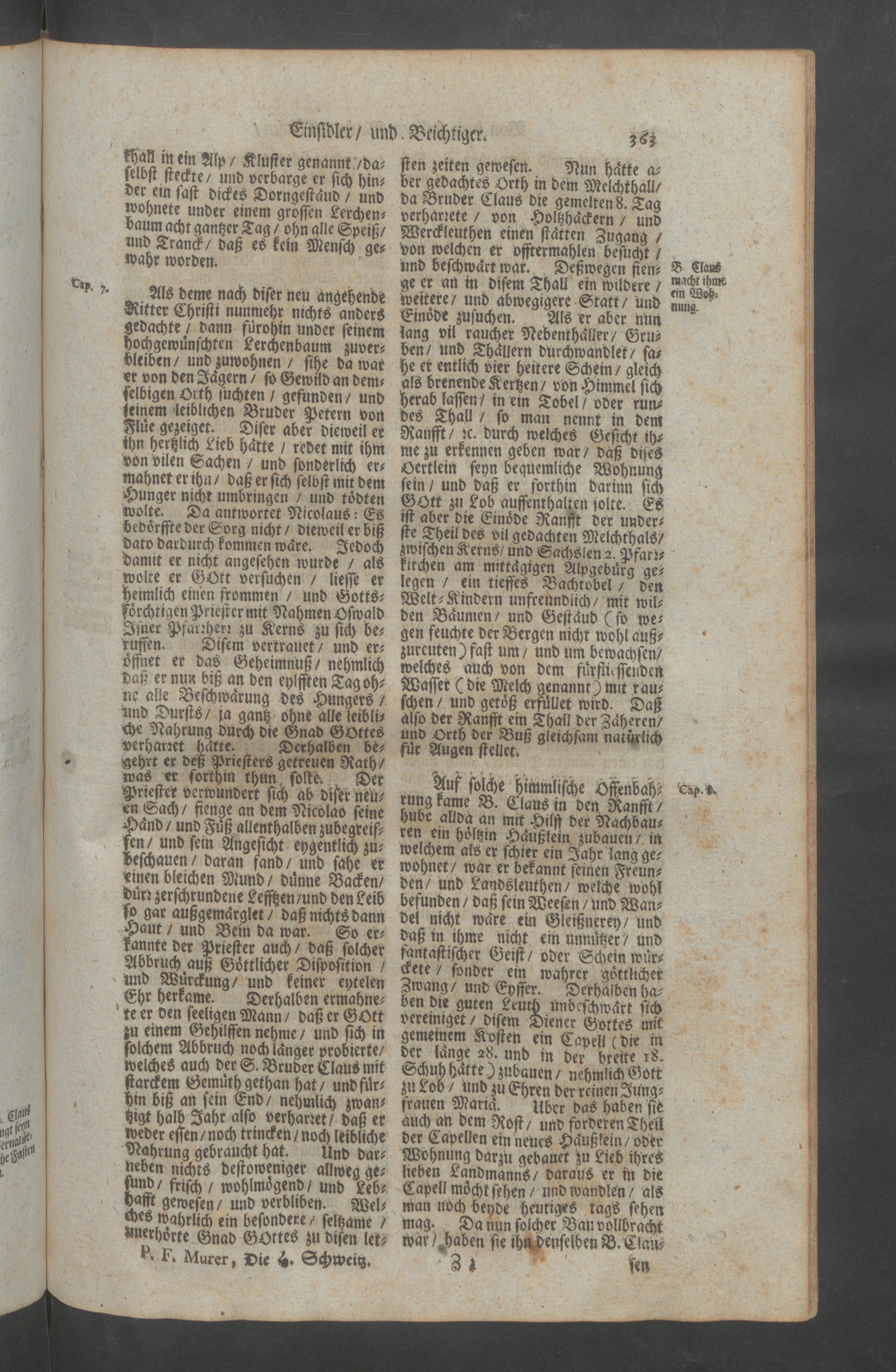 Helvetia Sancta, H. Schweitzer-Land : das ist ein Heiliger lustiger Blumen-Garten, und Paradeiss der Heiligen; oder Beschreibung aller Heiligen, so von Anfang der Christenheit in Heiligkeit des Lebens, und mancherley Wunderwercken, nicht allein in Schweitzerland, sondern auch an angräntzenden Orthen geleuchtet samt einem Zusatz von dem Heiligen Maryrer Fideli, und der Feyrlichen Enthebung des Seeligen Bruder Clausen, wie auch mit einem ausführlichen Register aller Heiligen, und Seeligen / <<seu>> Paradisus Sanctorum Helvetiae florum zusammen gezogen, und beschriben durch weyland den ehrwürdigen, und wohlgelehrten Herren, P.F. Henricum Murer, der Carthauss Ittingen Profess, und Procurator, etc.