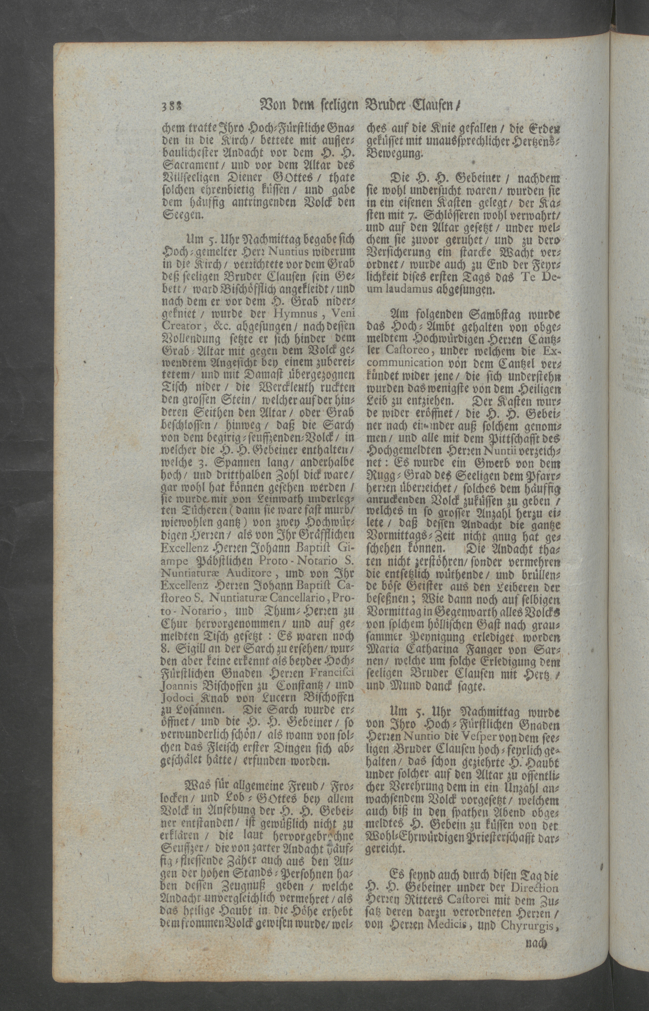 Helvetia Sancta, H. Schweitzer-Land : das ist ein Heiliger lustiger Blumen-Garten, und Paradeiss der Heiligen; oder Beschreibung aller Heiligen, so von Anfang der Christenheit in Heiligkeit des Lebens, und mancherley Wunderwercken, nicht allein in Schweitzerland, sondern auch an angräntzenden Orthen geleuchtet samt einem Zusatz von dem Heiligen Maryrer Fideli, und der Feyrlichen Enthebung des Seeligen Bruder Clausen, wie auch mit einem ausführlichen Register aller Heiligen, und Seeligen / <<seu>> Paradisus Sanctorum Helvetiae florum zusammen gezogen, und beschriben durch weyland den ehrwürdigen, und wohlgelehrten Herren, P.F. Henricum Murer, der Carthauss Ittingen Profess, und Procurator, etc.