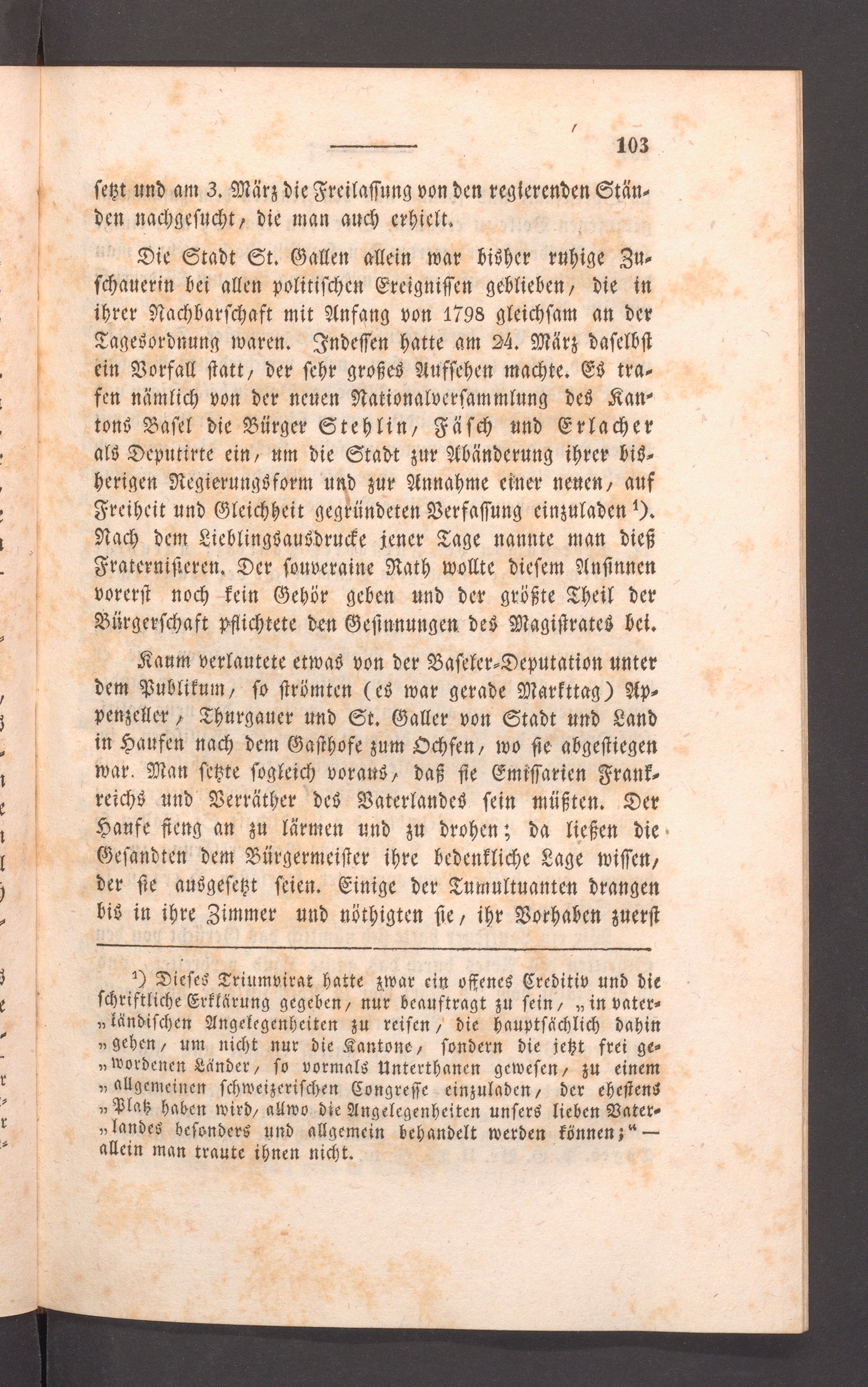 Geschichte des ehemaligen Stiftes und der Landschaft St. Gallen unter den zween letzten Fürstäbten von St. Gallen, besonders während den Jahren der helvetischen Revolution bis zur Aufhebung des Stiftes / von Franz Weidmann, gewesenem Mitglied des aufgehobenen Stiftes St. Gallen und vormaligem Bibliothekar an der kathol. Kantonal-Bibliothek in St. Gallen