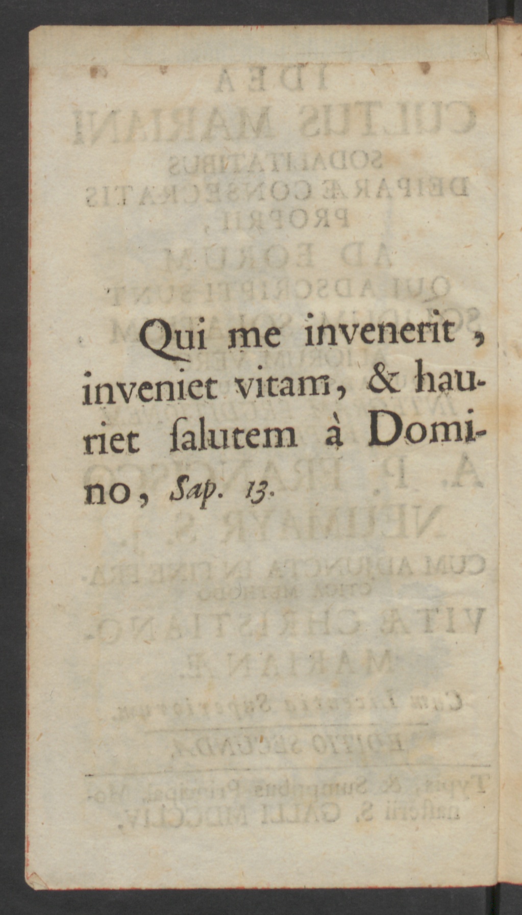Idea cultus Mariani : sodalitatibus Deiparae consecratis proprii, ad eorum qui adscripti sunt solidum solatium ... / explicata A. P. Francisco Neumayr S.J.