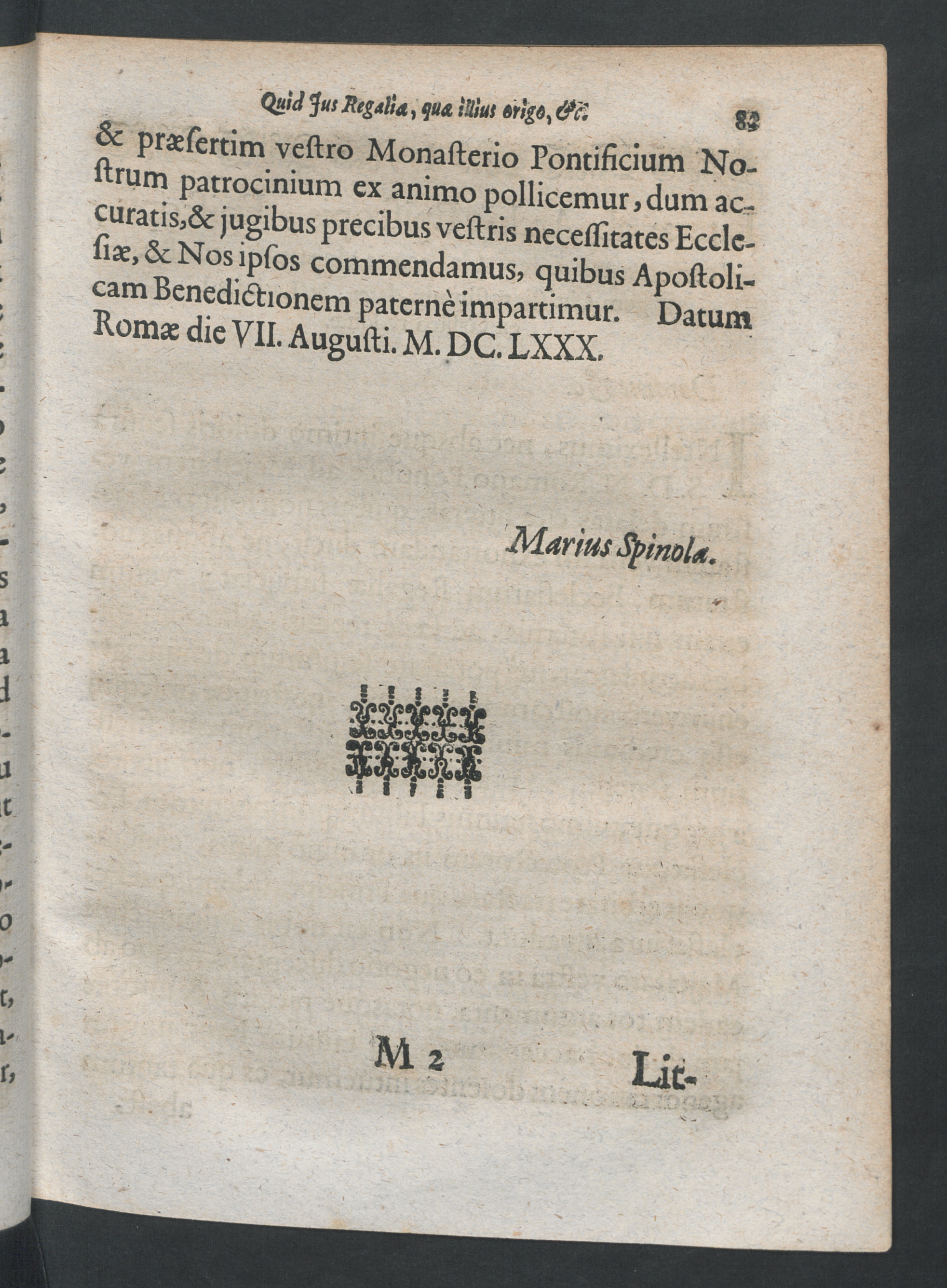 Regale sacerdotium Romano pontifici assertum et quatuor propositionibus explicatum / auctore Eminentissimo, & Reverendissimo S.R.E. Cardinale Coelestino Sfondrati olim S.R.I. Principe, & Abbate S. Galli