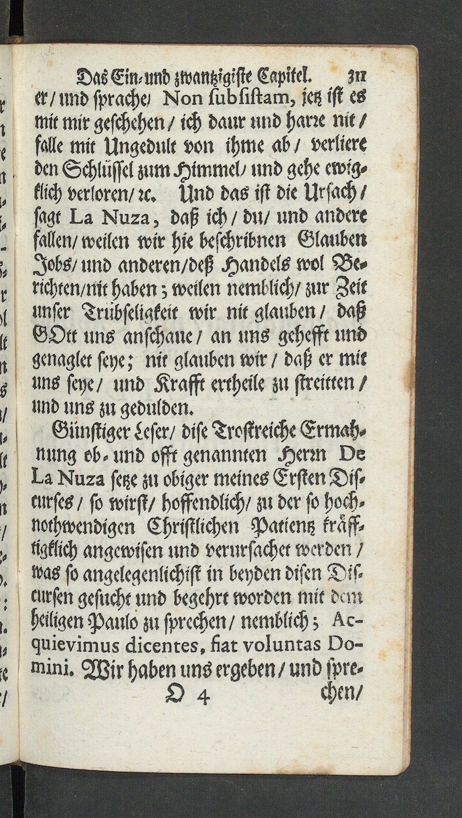 Anderer Discurs, und Christliches Bedencken von den Trüebseeligkeiten : auss den sehr vortrefflich- und geistreichen Schrifften Herrn Hieronymi Baptistae de la Nuza, &c. allen Betrangten zu Trost, wie auch zu Dienst der Meditanten und Predigeren göttliches Worts gezogen, geprediget, und in dise Form gebracht / durch F. Placidum Stoppelium Conventualen, und Pfarr-Herrn dess würdigen Gottshauses unser lieben Frauen bey St. Idden zu Fischingen, Notarium Apost.