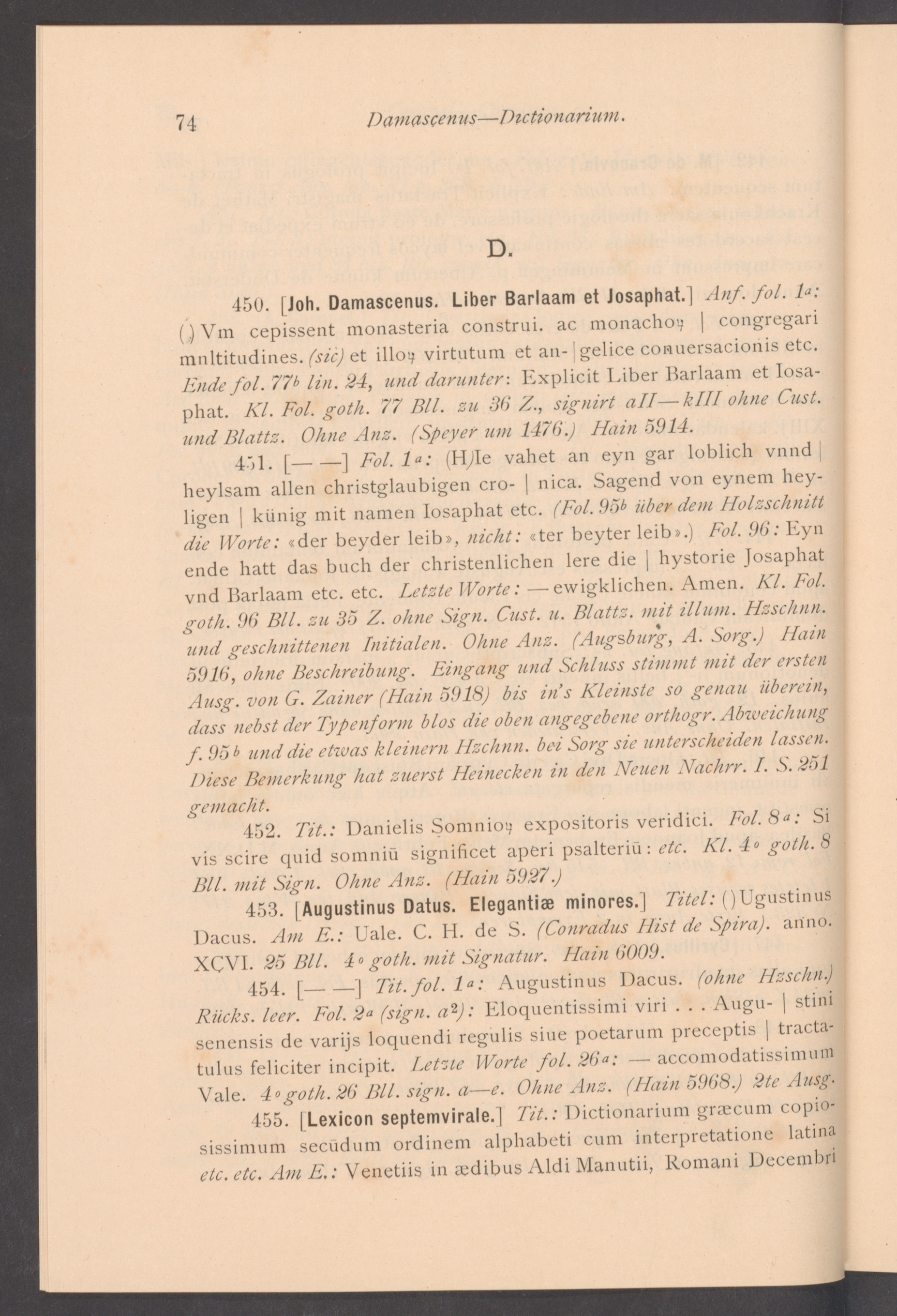 Verzeichniss der Incunabeln der Stiftsbibliothek von St. Gallen / herausgegeben auf Veranstaltung des Katholischen Administrationsrathes des Kantons St. Gallen ; bearbeitet von Gustav Scherrer