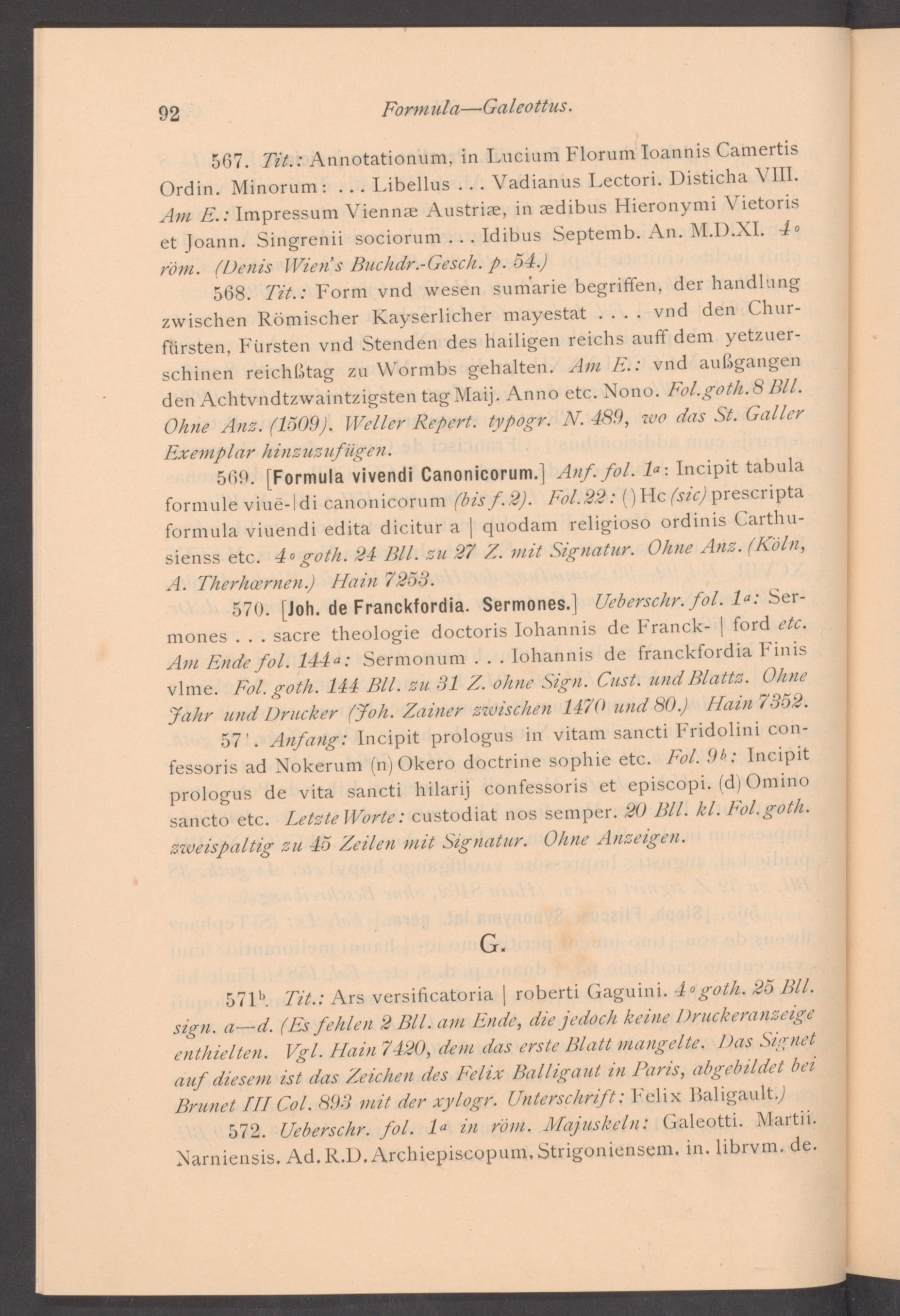 Verzeichniss der Incunabeln der Stiftsbibliothek von St. Gallen / herausgegeben auf Veranstaltung des Katholischen Administrationsrathes des Kantons St. Gallen ; bearbeitet von Gustav Scherrer