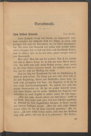 Was nun? Was soll aus dir werden? Das ist die einfacheund doch so schwere Frage, die an dich und deine Eltern heran-tritt. Du willst doch wohl etwas Rechtes werden, etwas, worindu alle deine Gaben verwerten kannst. Du möchtest etwas wer-den, das dir auch den Werktag lieb macht.
