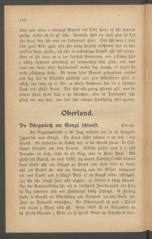 denn nun wenn e munzigs Mannli ins Dorf chuu; es hat neamadgwüßt, woher aß es gsi ischt. Naiswär hätS nu emol gfea us Tufaha chuu; doa hat wen ein Tufmannli gsait. Das hat denn e tcilaLütt gueti Rööt ggiä, unn hat meng Ungfehl verhüetat unn in ver-zivifleta Laga ghulfa,, aß alls en uufrichtiga Respekt gha hat vorem.Aber es hat denn oo a soa knrrjose Gwunnata, unn z Schau hätso allbig ötfchwas uisrichtigi un laidwerchigi Lütt gkaa, unn wosemol vor denn beim Spötterbank »erbet heg muaßa, so hegen siswella zSchanna stella. Ab demm seids Mannli gränzaloas ertobctund heg ina ds Böasischt gwüüscht unn zum Rädlifücrcr gsait, ermüeß, soa lang aß er läbi, cn böasa Nochbuur haa un a schlächtsDach und gfäält Broat. Der ischt affa gnucg gstrooft gsii, unn dieandere haun ihren Tail o no überchuu; aber ds Tufmannli ischtgliach nia mea chuu, unn das ischt mängcr Huishaltig übel ggange.