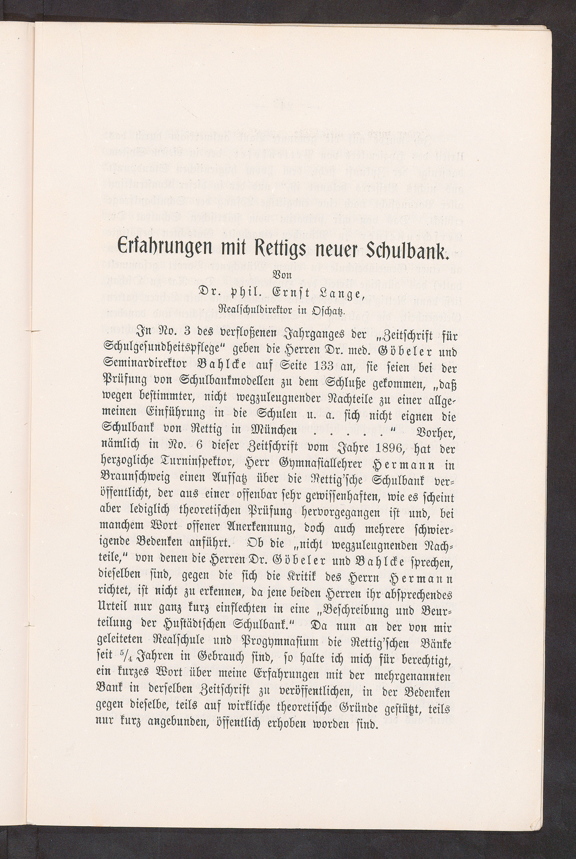 Zur Schulbankfrage : Vortrag / von Otto Neumann