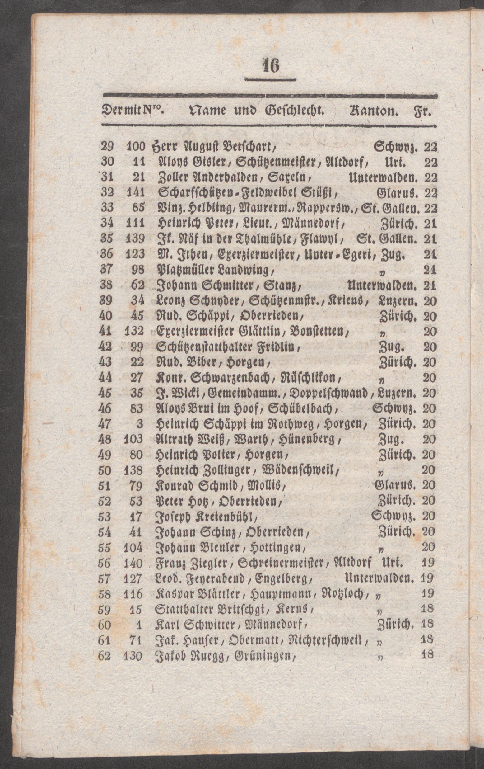 Verzeichnis aller Gaben-Gewinner an dem Ehr- und Freischiessen in Zug, gehalten den 24., 25., 26., 27., 28. und 29. Heumonats des laufenden 1836 Jahres