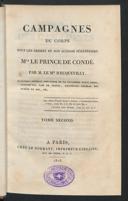 Ecquevilly, Armand François Hennequin d' [1747-1830]In: Campagnes du corps sous les ordres de son altesse sérénissime Mgr le Prince de Condé / par le Mis d' Ecquevilly, (1818)Paris : chez le Normant, Imprimeur-Libraire, 1818e-raraTome III.