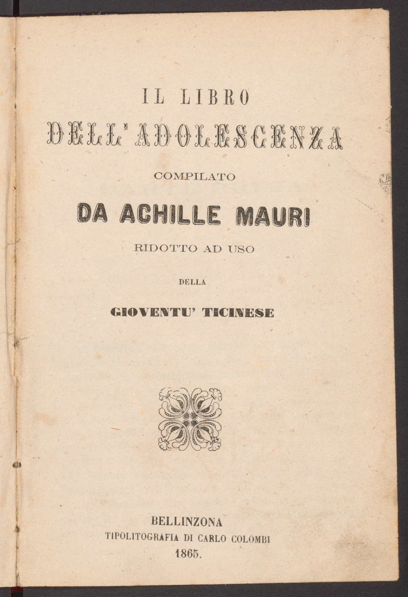 Il libro dell'adolescenza : ridotto ad uso della gioventù ticinese / compilato da Achille Mauri