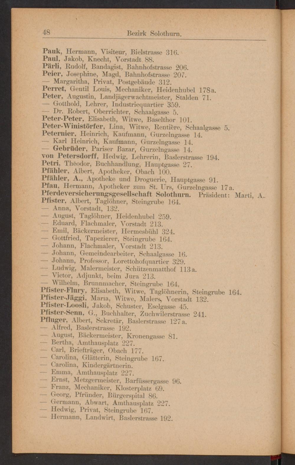Adressbuch für die Stadt und den Kanton Solothurn : 1898-99 : nach amtlichen Quellen erstellt und mit einem Plan der Stadt Solothurn versehen