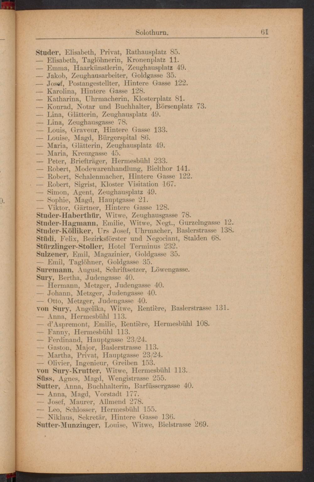 Adressbuch für die Stadt und den Kanton Solothurn : 1898-99 : nach amtlichen Quellen erstellt und mit einem Plan der Stadt Solothurn versehen