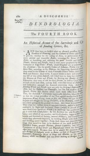 1. AND thus have we finish’d what we esteem’d necessary f° rDirection of ‘Planting, and the Culture of Trees andin general; whether for the raising of New, or preservation of *more ancient and venerable Jhades, crowning the Brows ot 1 ° ^Hills, or furnishing and adorning the more fruitful and hufls ^Plains , Groves and For efts, such as were never prophan’d by the thumanity of Edge-Tools: Woods , whose Original are as unknownthe Arcadians ; like the goodly Cedars of Libanus, Psalm 104. ^.bores ‘Dei, according to the Hebrew, for something doubtless >vRithey noted in the Genius of those Venerable Places besides their & e ^Bulk and Stature: And verily, I cannot think to have well acquitmy self of this useful Subject, till I shall have in some sort vindlc^the Honour o£ Trees and Woods, by shewing my Reader of" .Estimation they were of old for their Divine, as well as Civil k/; |at least refresh both Him, and my Self, with what occurs of a