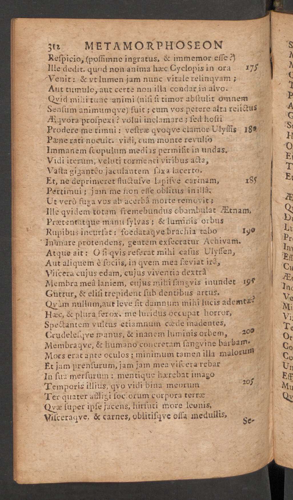 Qvid miiii runc animi (nisi si timor abstulit omnemSensum animumqve) fuit; cum vos petere alta rciictuSASqvora prospexi ? volui inclamare; sed hostiProdere me timui: vestr* qvoqve clamor UlyfiT«Fame rati nocuit, vidi,cum monte revulsoImmanem scopulum medias permisit in undas.