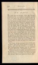 ]Le pavé doit erre de grais. Celui que l’on em-ployé pour les rues a environ 8 ppuces en toussens ; il se pose à sec sur une forme de sable derivierre , & on le dresse à la demoiselle ; quand ils’agit de paver un grand chemin ou une route,on ajoute des deux côtés de la chaussée des bor-dures de pierre dure , posées de champ , & quel’on fait entrer dans la terre pour la fortifiervers ces endroits. Le pavé d’usa'ge pour les cours& les cuisines , est de deux échantillons ; leplus grand est composé des gros pavés des rues,fendus en deux , & s’employe à chaux & cimentdans les cours ; le plus petit sert pour les cui-sines , & s’employe auíîi à chaux & à ciment.En général, il faut pour l’écoulement des eauxdonner a u pavé des cours 1 pouce de pente partoise, suivant la longueur du ruisseau , & faireen outre par les côtés , des revers suífisans versledit ruisseau. Le pavé se paye à la toise super-ficielle.