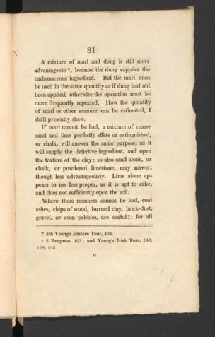 A mixture of marl and dung is still moreadvantageous *, because the dung supplies thecarbonaceous ingredient. But the marl mustbe used in the same quantity as if dung had notbeen applied, otherwise the operation must bemore frequently repeated. How the quantityof mail or other manure can be estimated, Ishall presently shew.