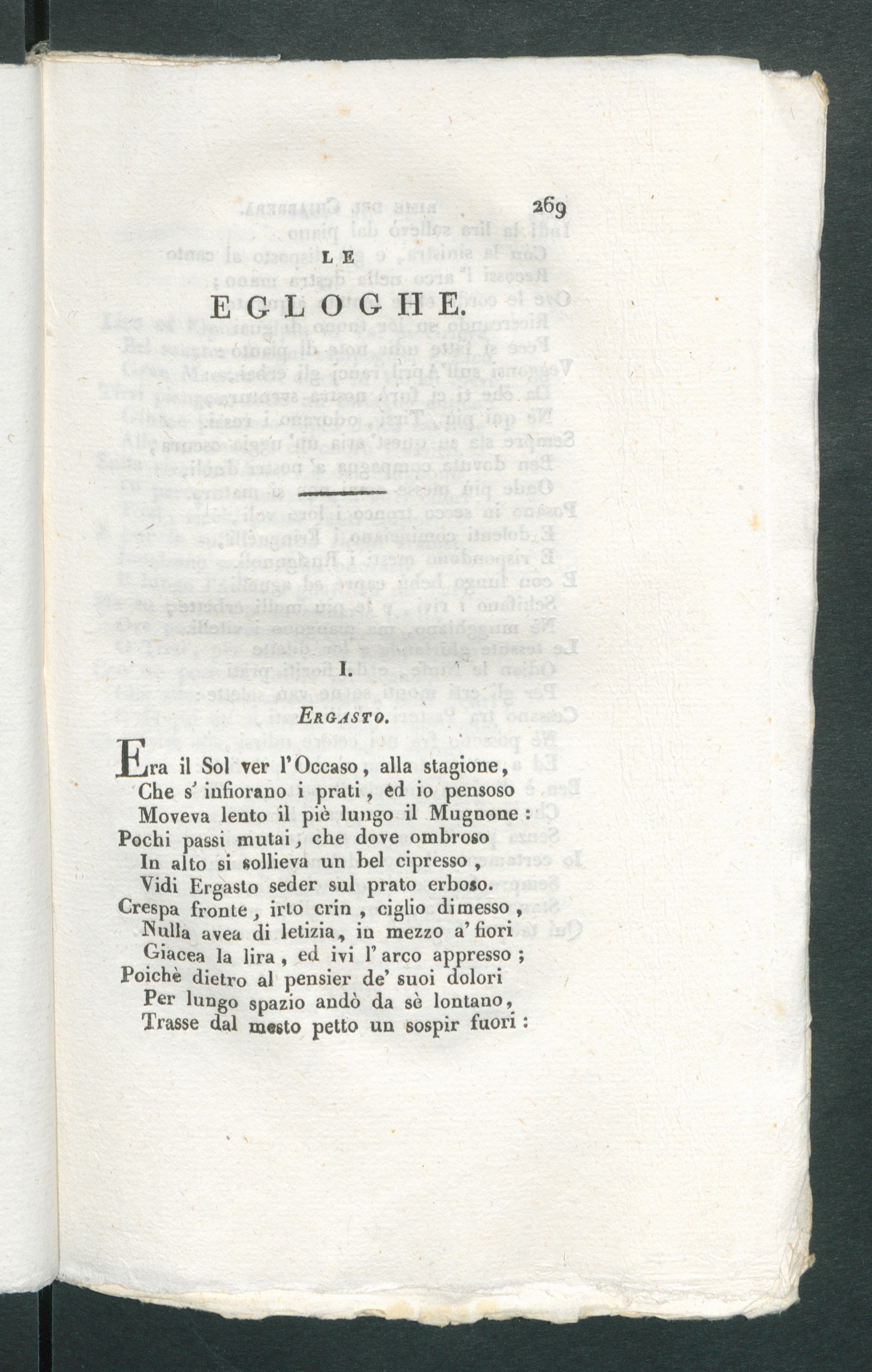 Crespa fronte, irlo crin , ciglio dimesso,Nulla avea di letizia, iu mezzo a’fioriGiacea la lira , ed ivi 1’ arco appresso ;