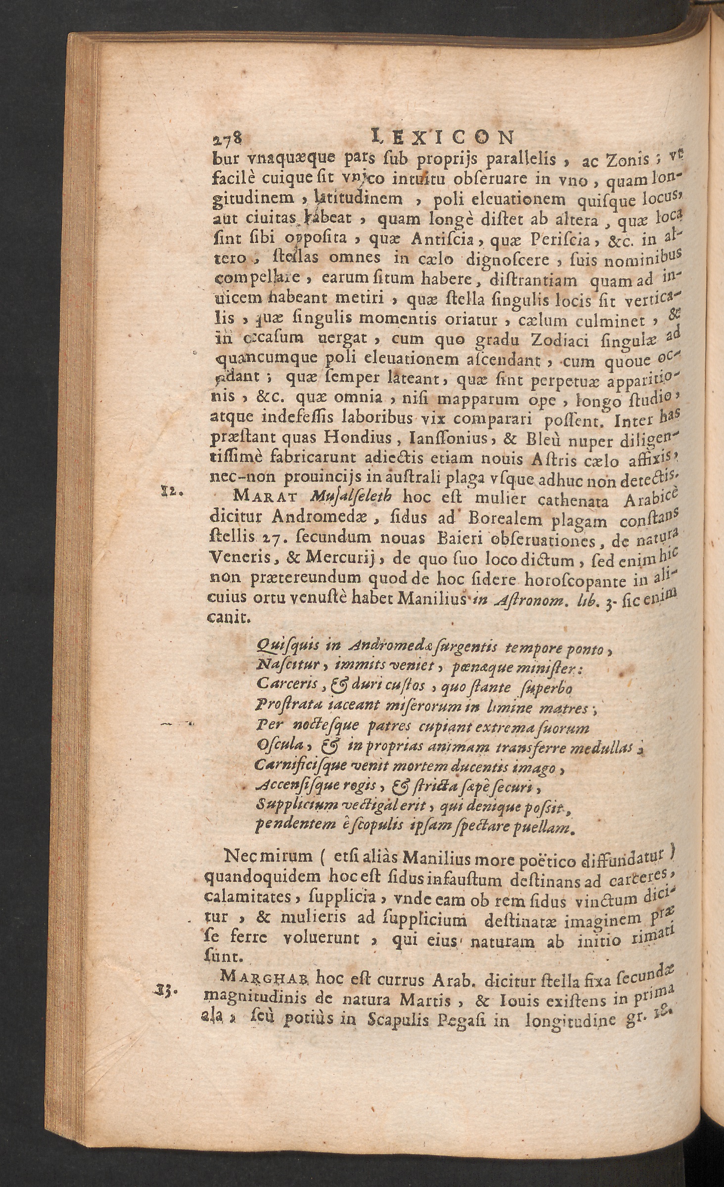 Mak AT Muſalſeleth hoc eſt mulier cathenata Arabic“dicitur Andromedæ, ſidus ad Borealem plagam con ſtanſtellis 27. ſecundum nouas Baieri obſeruationes, de belpteVeneris,& Mercurij, de quo ſuo loco dictum, ſed enim hinon prætereundum quod de hoc ſidere horoſcopante in 1cuius ortu venuſtè habet Manilius Aſeronomm. lib. 3. ſic eniicanit. 8