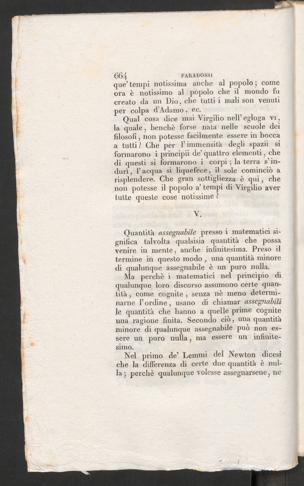 Qual cosa dice mai Virgilio nell’ egloga vi,la quale, benché forse nata nelle scuole deifilosofi, non potesse facilmente essere in boccaa tutti ì Che per l 1 immensità degli spazii siformarono i principii de’ quattro elementi, chedi questi si formarono i corpi ; la terra s’in-durì , l’acqua si liquefece, il sole cominciò arisplendere. Che gran sottigliezza è qui, chenon potesse il popolo a’ tempi di Virgilio avertutte queste cose notissime ì