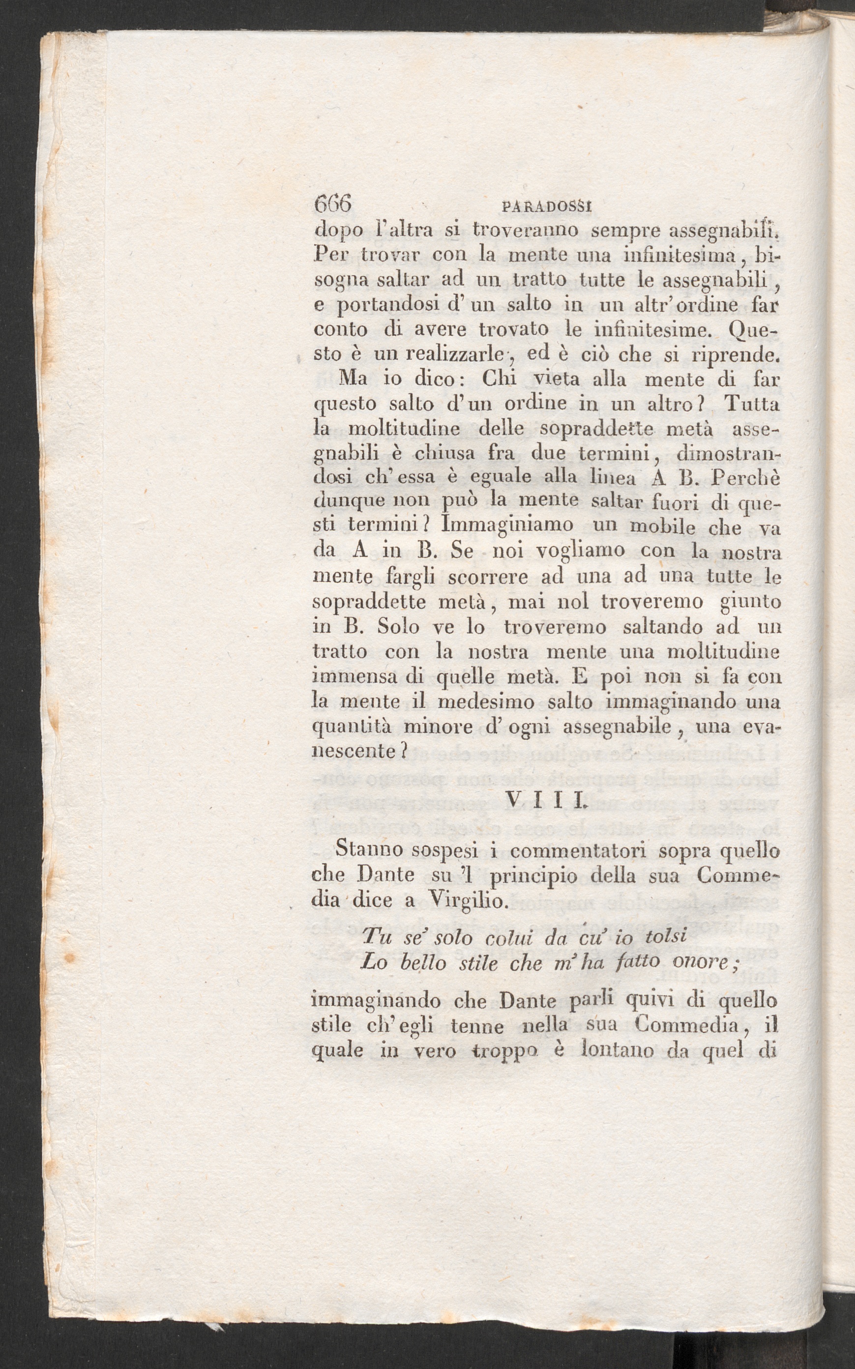 dopo l’altra si troveranno sempre assegnabili.Per trovar con la mente una infinitesima, bi-sogna saltar ad un tratto tutte le assegnabili,e portandosi d’ un salto in un altr’ ordine farconto di avere trovato le infinitesime. Que-sto è un realizzarle, ed è ciò che si riprende.