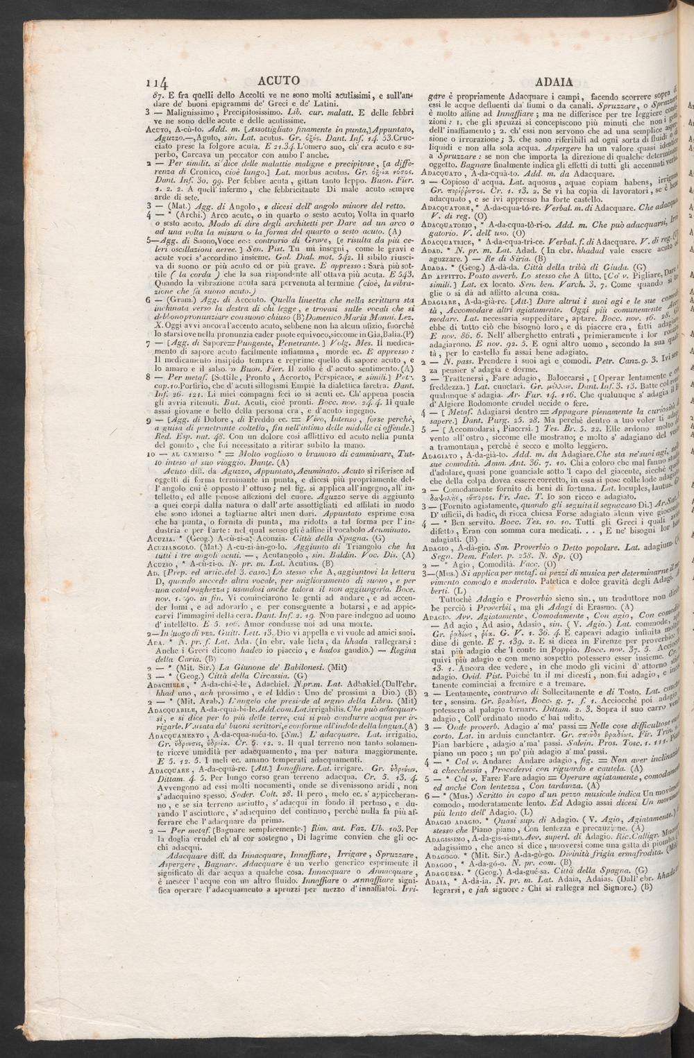 Ad ai>io , Ad asio, Adasin, sin. ( V. Agio .) Lai. corninoli 6 ^, ( |iGr. f ’xìiiui , ps'x. G. V. i. 36. 4- E capeavi adagio infinita f
