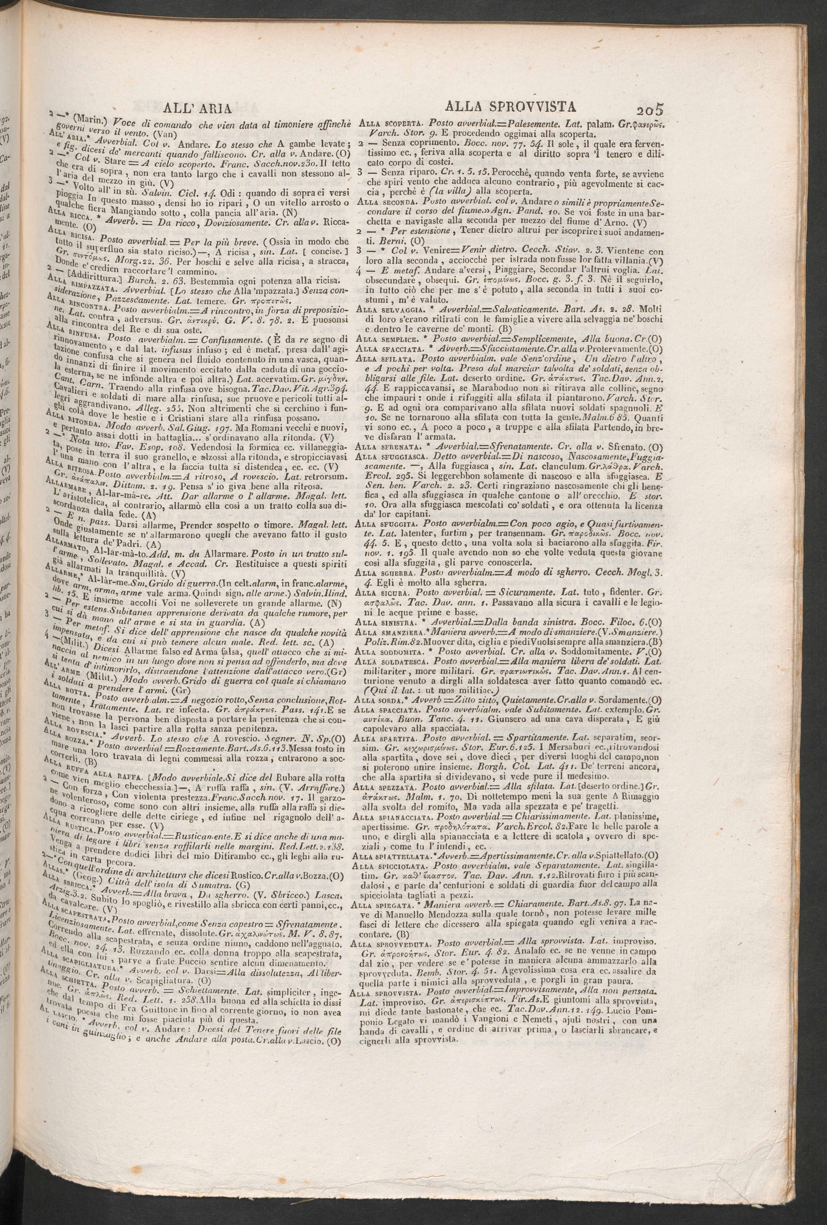 * Grazio; ZZA n A ‘ ^weibiaL [Lo stesso che Alla ’mpazzata.] Senza con-ll *A * ** azzes damente. Lat. temere. Gr. TtpQzrsrws.