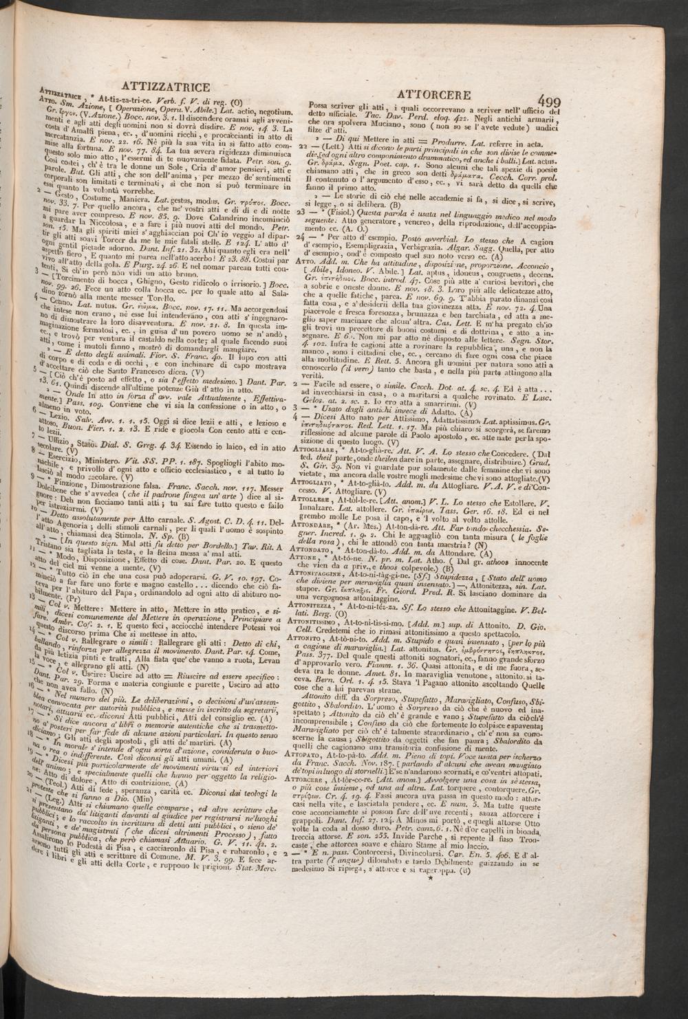 „ ? 1 atti soavi Torcer da me le mie fatali stelle. E izjf. L’ atto d',j 1 S e *ttil pietade adorno. Doni. Inf. 2t. 3 z. Ahi quanto egli era nell’Vivi f lero » ® quanto mi parea nell'atto acerbo ! E 2 3 . 88. Costui parterir 3 . a *h? della gola. E Purg. 24■ 26. E nel nomar parean tutti con-— Ìln®' ch’io però non vidi un atto bruno.