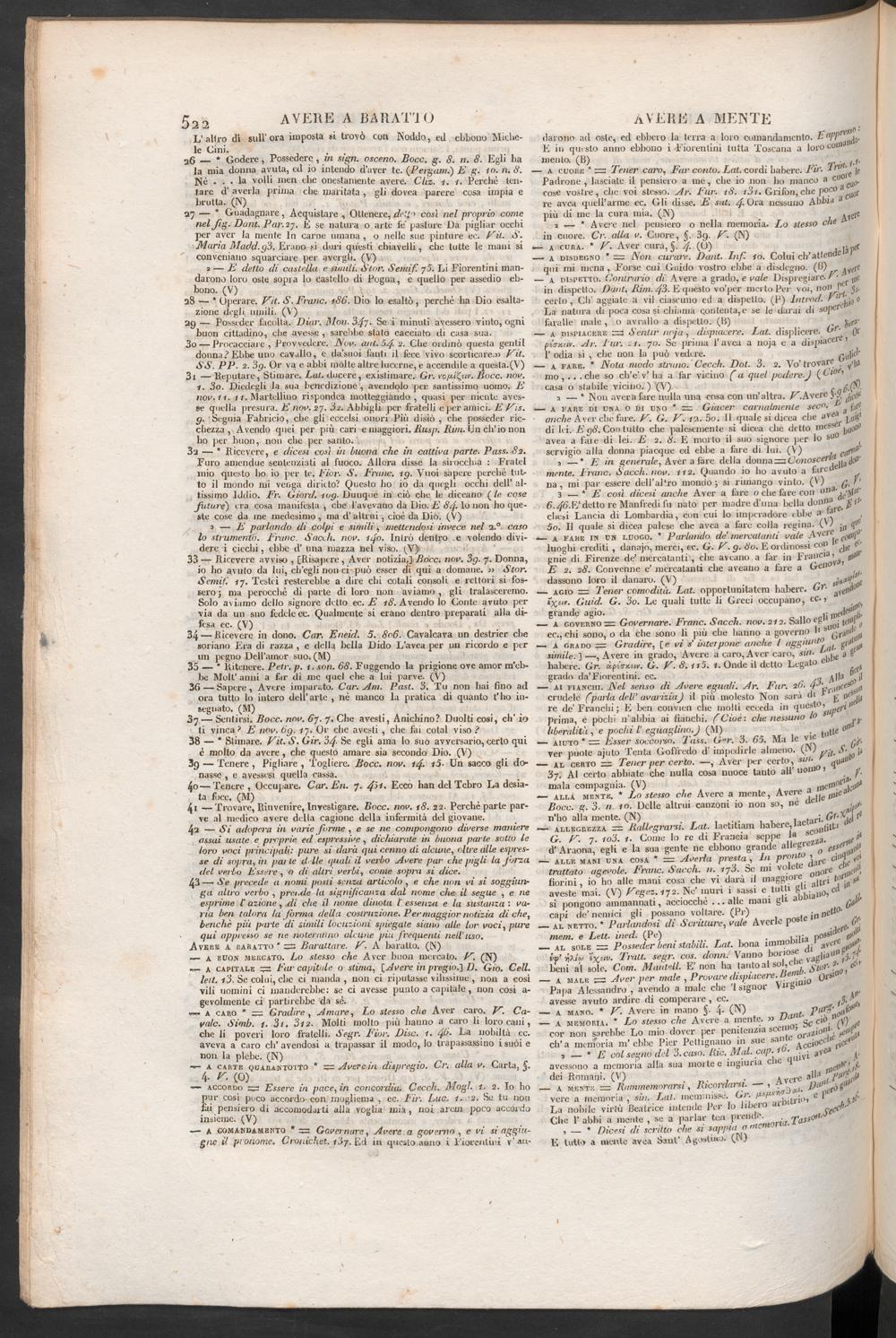 42 — SÌ adopera in varie forme , e se ne compongono diverse maniereassai usate e proprie ed espressive , dichiarate in buona parte sotto leloro onci principali• pure si darà qui cenno di alcune , oltre alle espres-se di sopra, in patte d-lle quali il verbo Avere par che pìgli la forzadel verbo Essere , o di altri verbi, come sopra si dice.