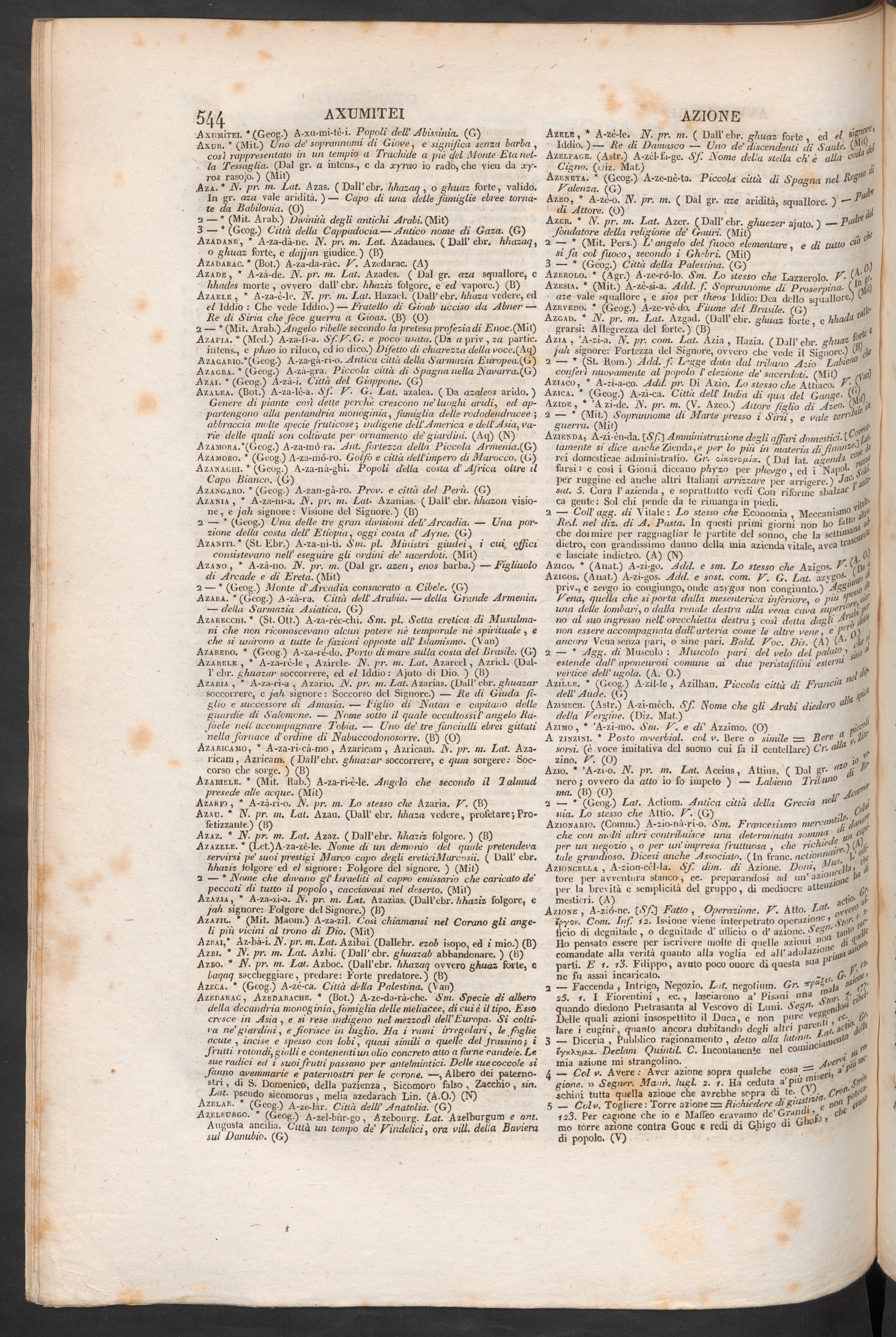 intens., c phuo io riluco, cd io dico.) Difètto di chiarezza della yoet’.(Aq )AzAGARio.*(Gcog.) A-za-gà-ri-o. Antica città della Sarmazia Europea.^ G)Azagra. * (Geog.) A-za-gra. Piccola città di Spagna nella JSavarra.( G)Azai. * (Geog.) A-zà-i. Città del Giappone . (G)