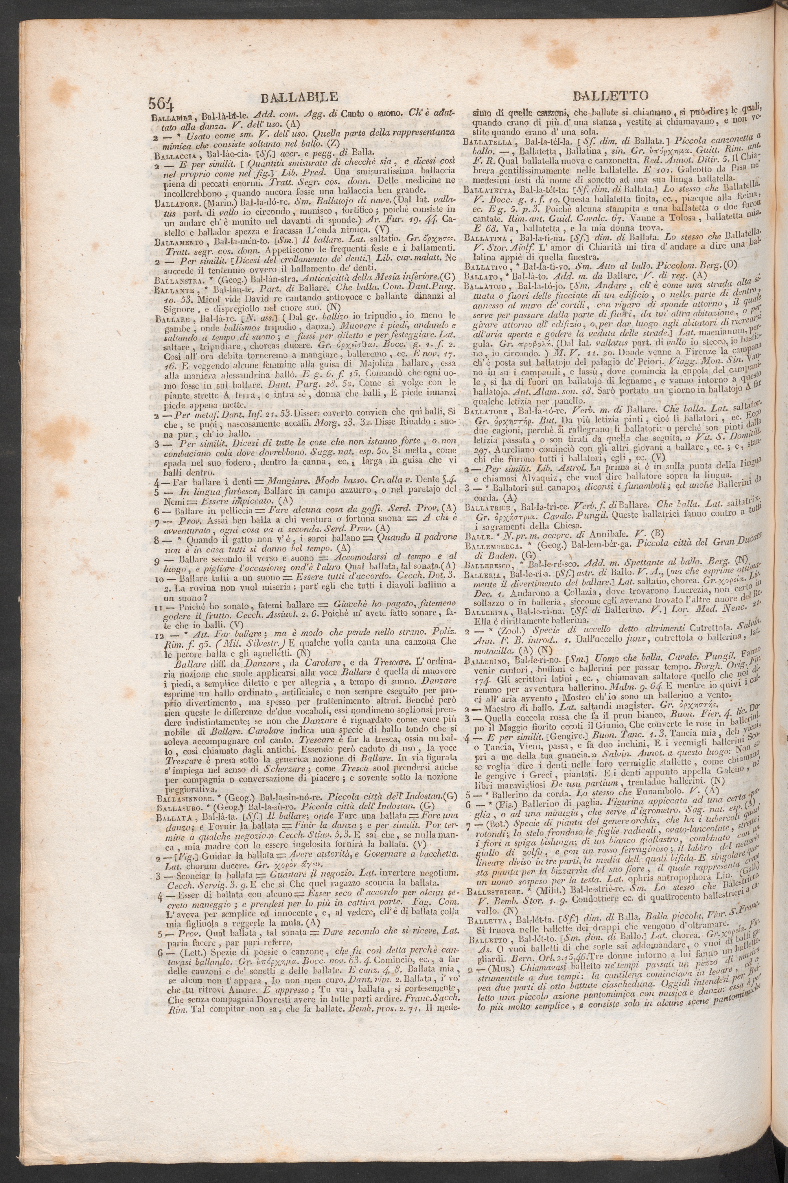 Ballativo , * Bal-la-lì-vo. Sm. Allo al ballo. Piccolom. Berg.( 0 )Ballato , * Bal-là-to. Add. m. da Ballare . C. di reg. (A) ■