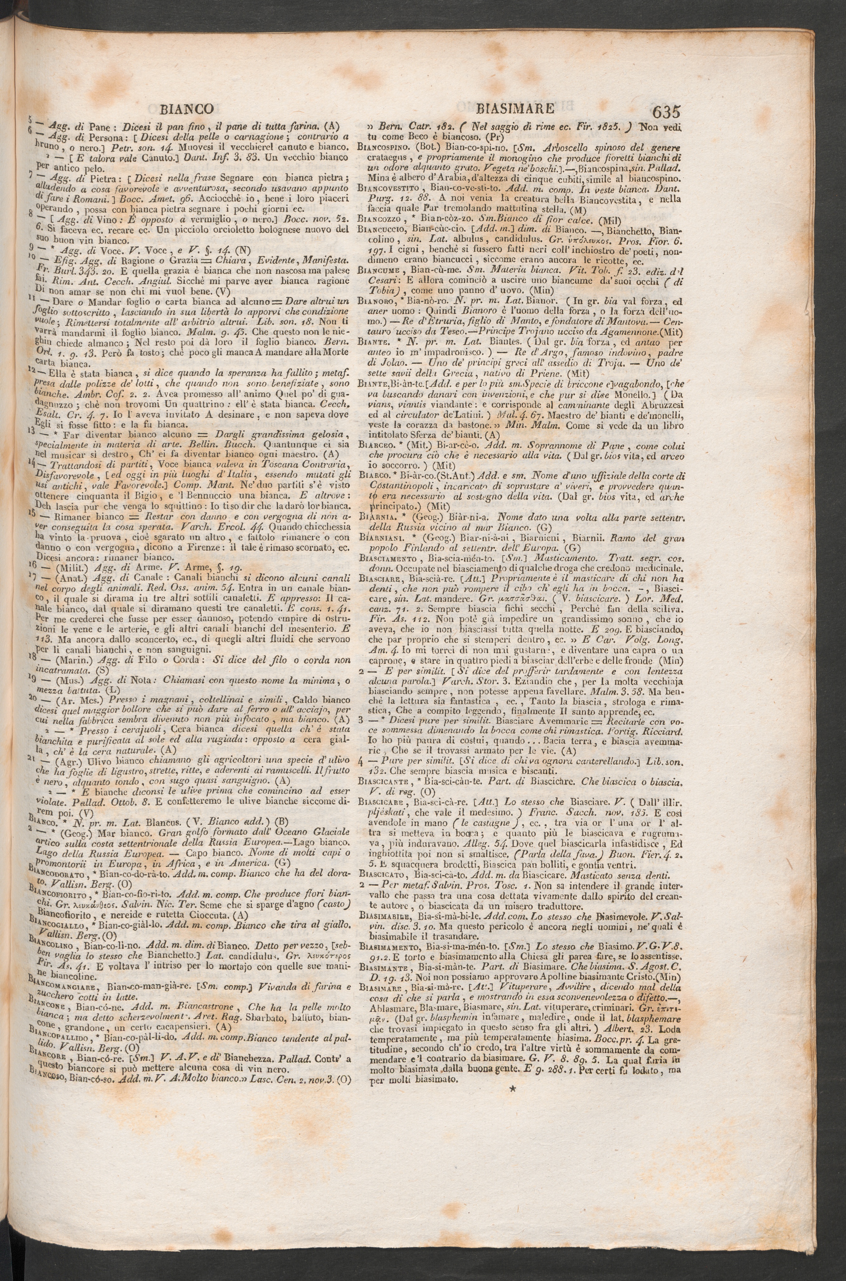 a — * Far diventar bianco alcuno = Dargli grandissima gelosia ,specialmente in materia di arte. Bellin. Bucch. Quantunque ei siabel musicar sì destro, Ch’ ei fa diventar bianco ogni maestro. (A)