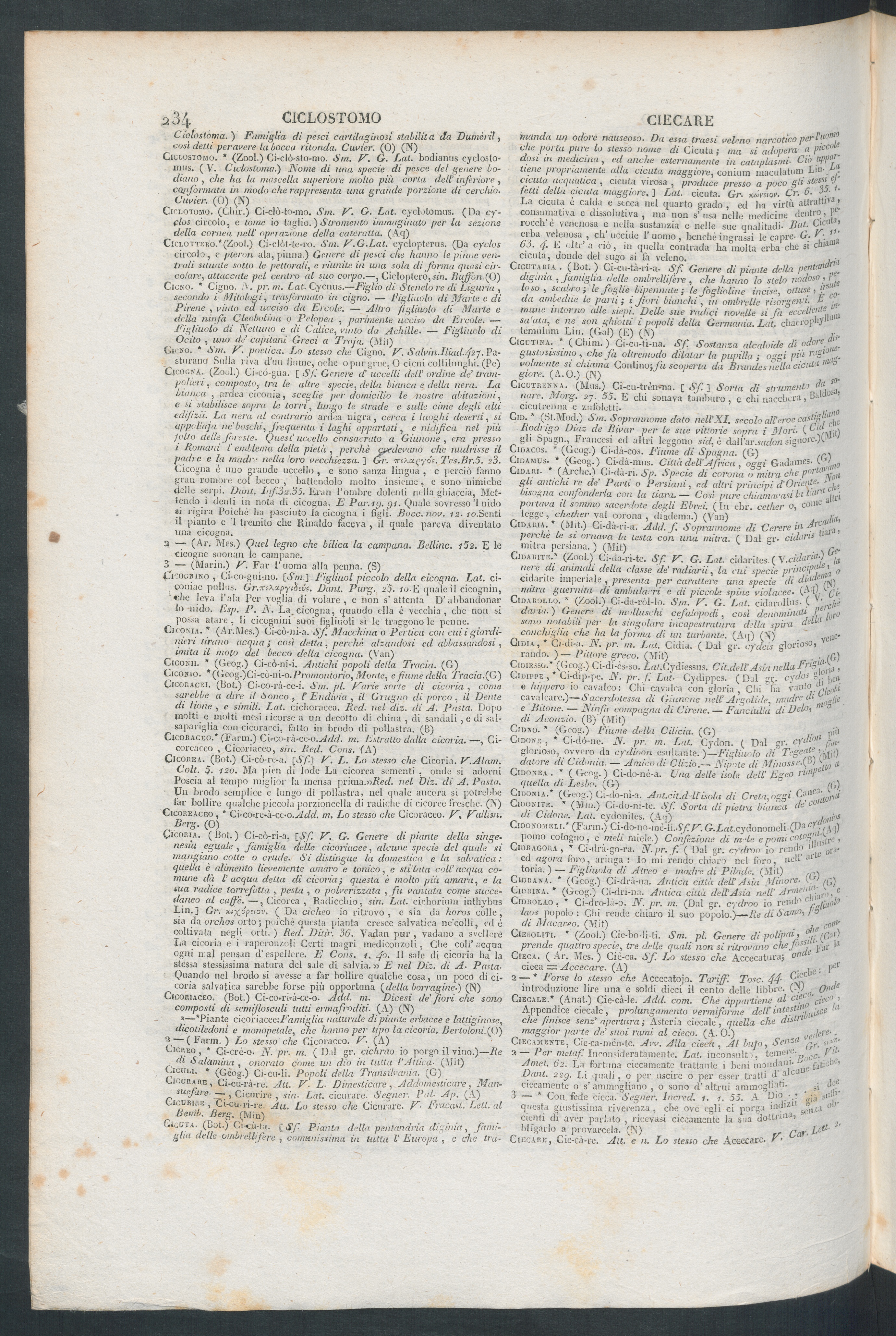 Ciclostomo. * (Zool.) Ci-clò-sto-mo. Sm, V. G. Lai. bodianus cycìosto-inus. ( V. Cwlostonia.) Nome di una specie di pesce del genere Io-dumo , che ha la mascella superiore motto più corta dell ’ inferiore ,coj formata in modo che rappresenta una grande porzione di cerchio .Cuvicr. ( 0 ) (N)