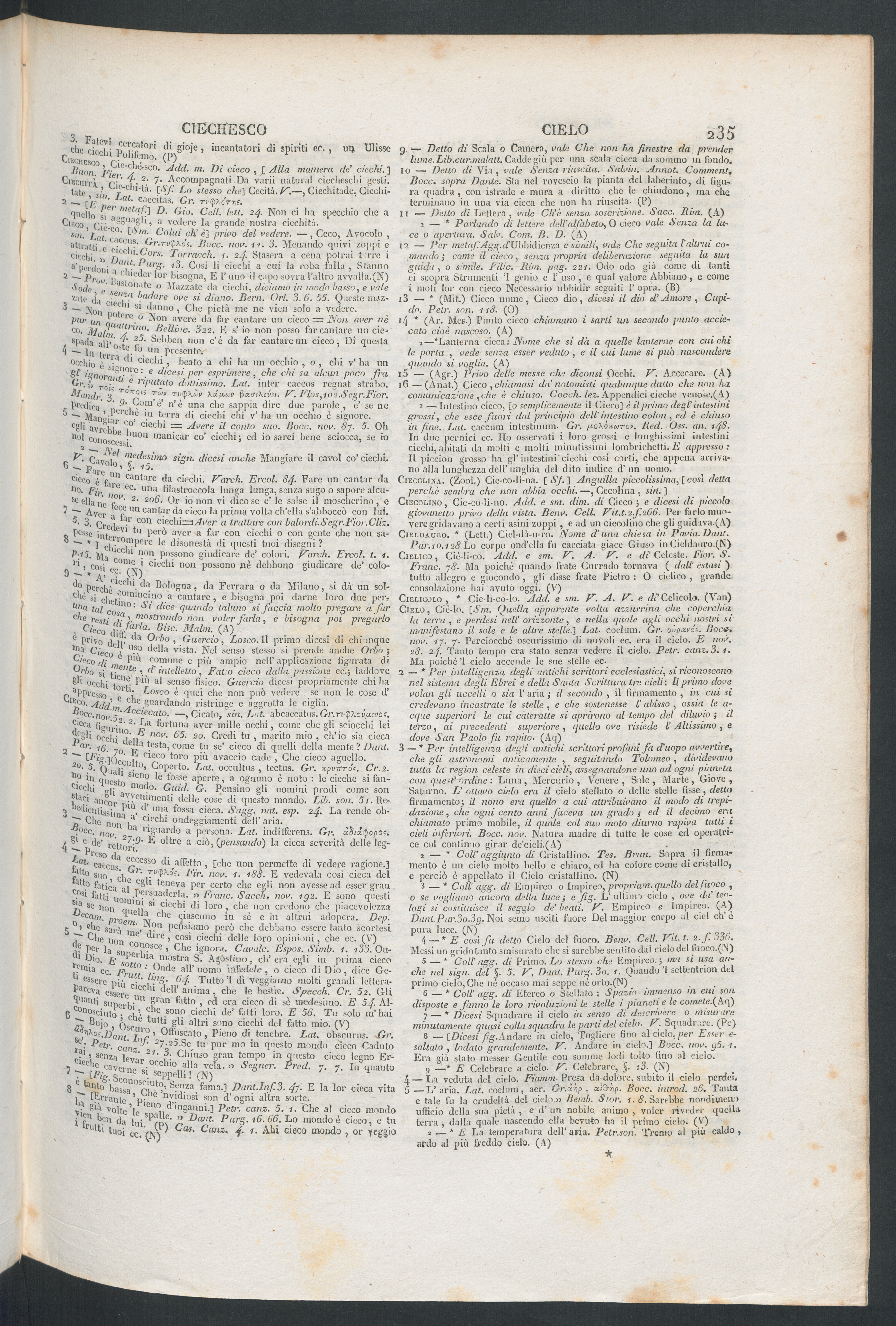 . c c.uoo $ ^ Cc ^ ecat0 ' —, Cicalo, sin. Lat. abcaecatus.Gr.rii^ciJ/isi'O!:.*:‘ c ca fìrr Ur ^f 2 *p a ^ r bina aver mille occhi, coinè clic gli sciocchi lei°cchi a ?*ii HOi} ‘ 20 ‘ ^ ret ^ , marito mio , ch’io sia cieca■* «r. jQ' e “ a testa, come tu se’ cicco di quelli della mente ? Dani.