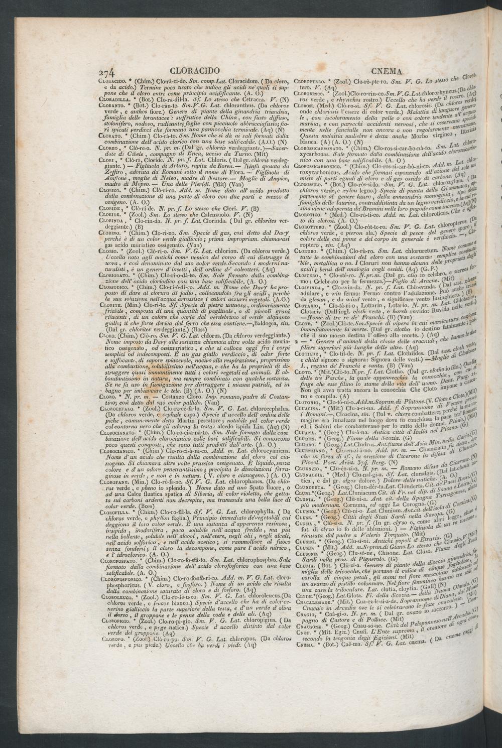 Cloro. * N. pr. rii. — Costanzo Cloro . Imp. romano , padre di Costati-tino; cosi dello da! suo color pallido. (Van)