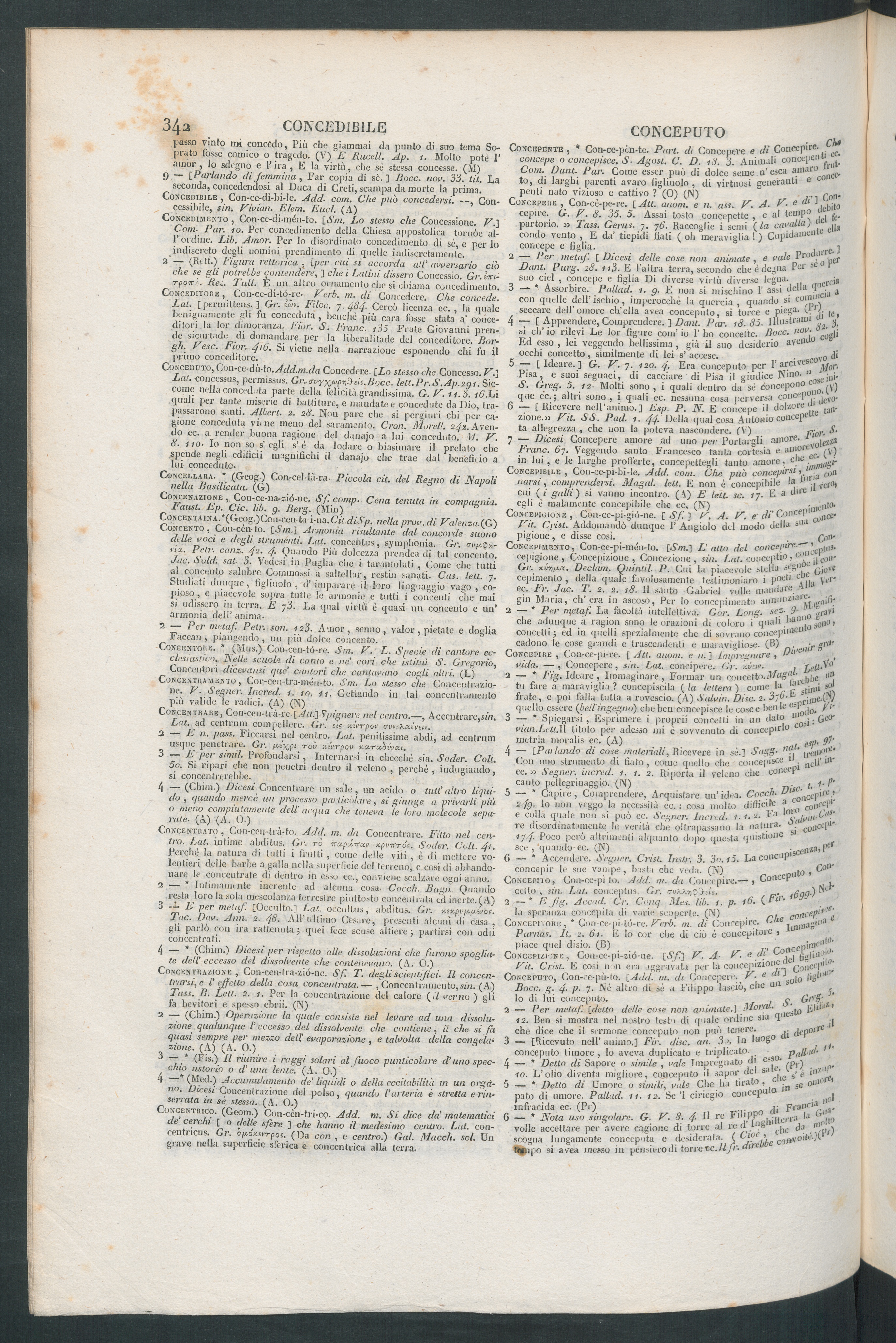 9 — [Parlando di femmina , Far copia di se,] Bocc. nov . 33 . tit. Laseconda, concedendosi al Duca di Creti, scampa da morte la prima.Concedibile , Con-ce-dì-bi-le. Add- com. Che pub concedersi. —, Con-cessibiie, sin. diviati. Elem. Eucl. (A)